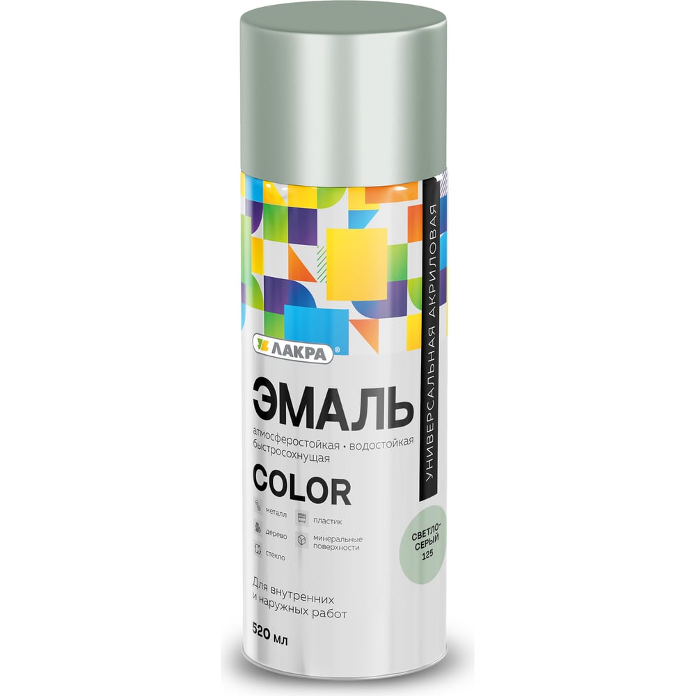 Аэрозольная эмаль ЛАКРА Color универсальная, светло-серый 125 Лк-00012485