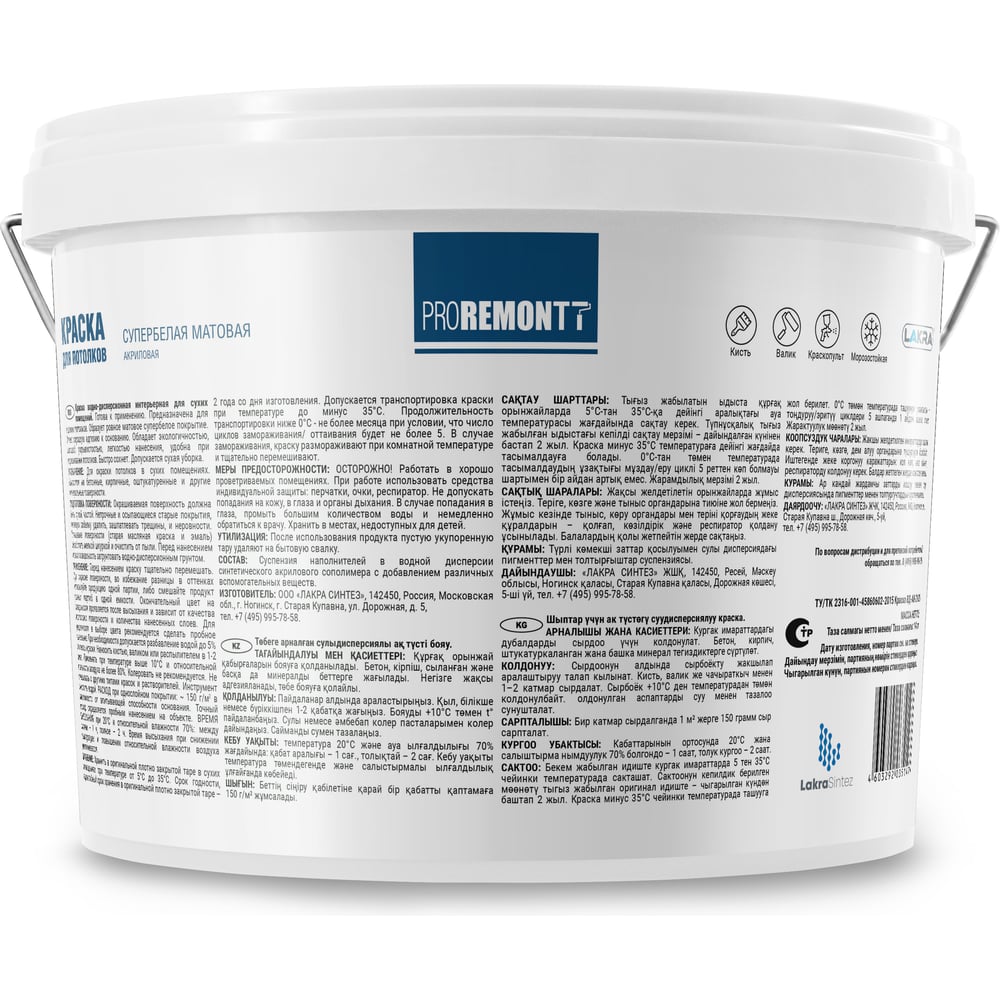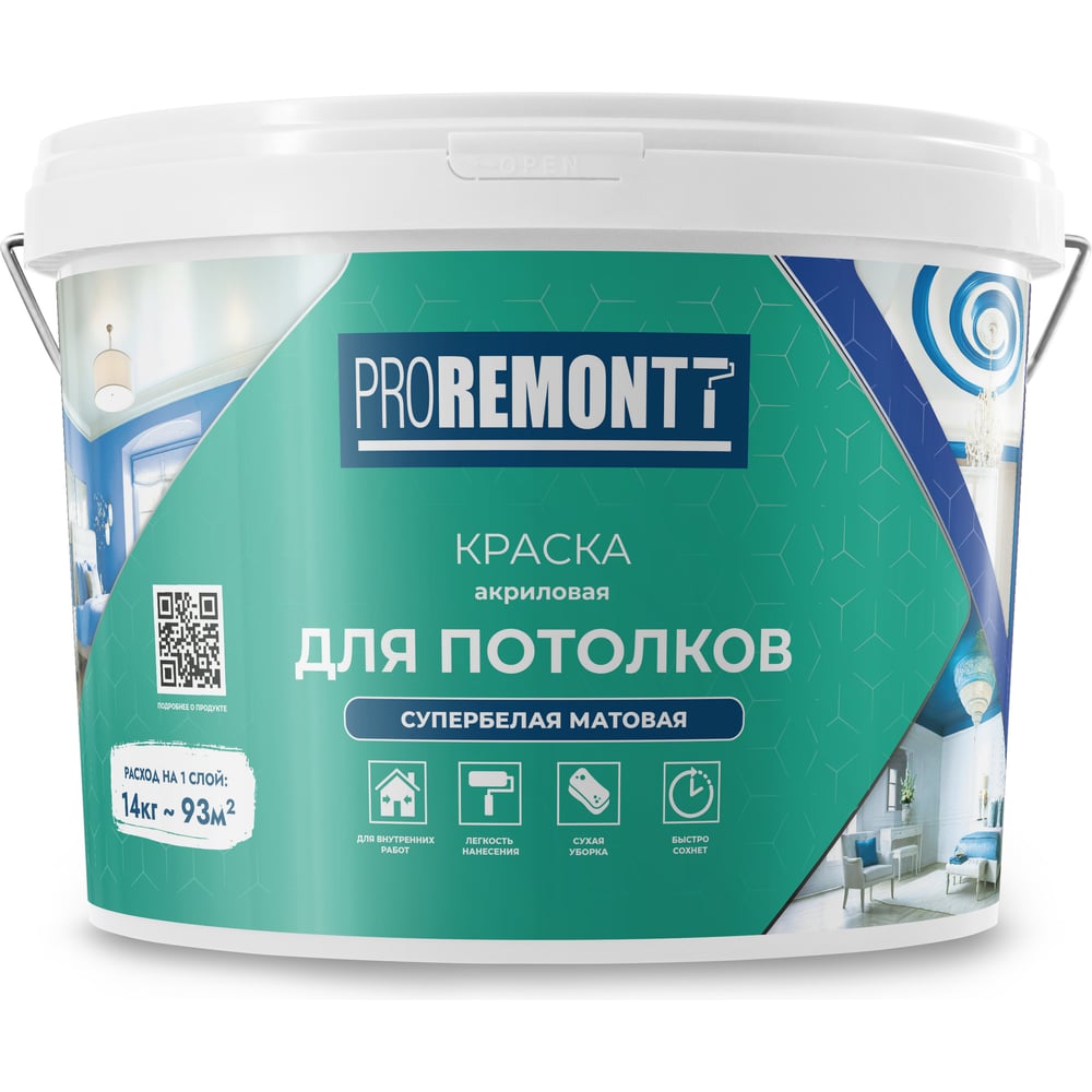 Краска для стен и потолков Proremontt супербелая, 14 кг Лк-00012722