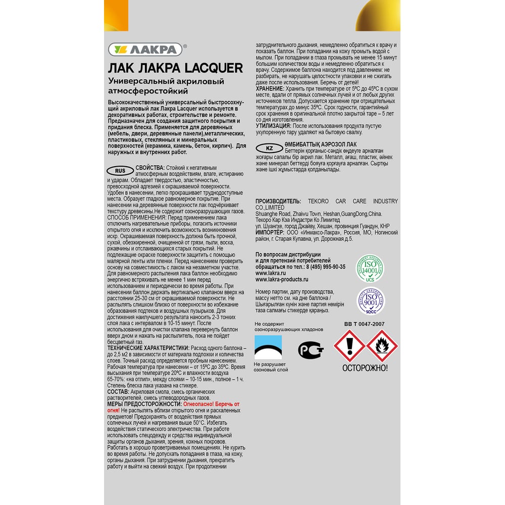 Аэрозольный лак ЛАКРА Lacquer универсальный, глянцевый 190 Лк-00012509