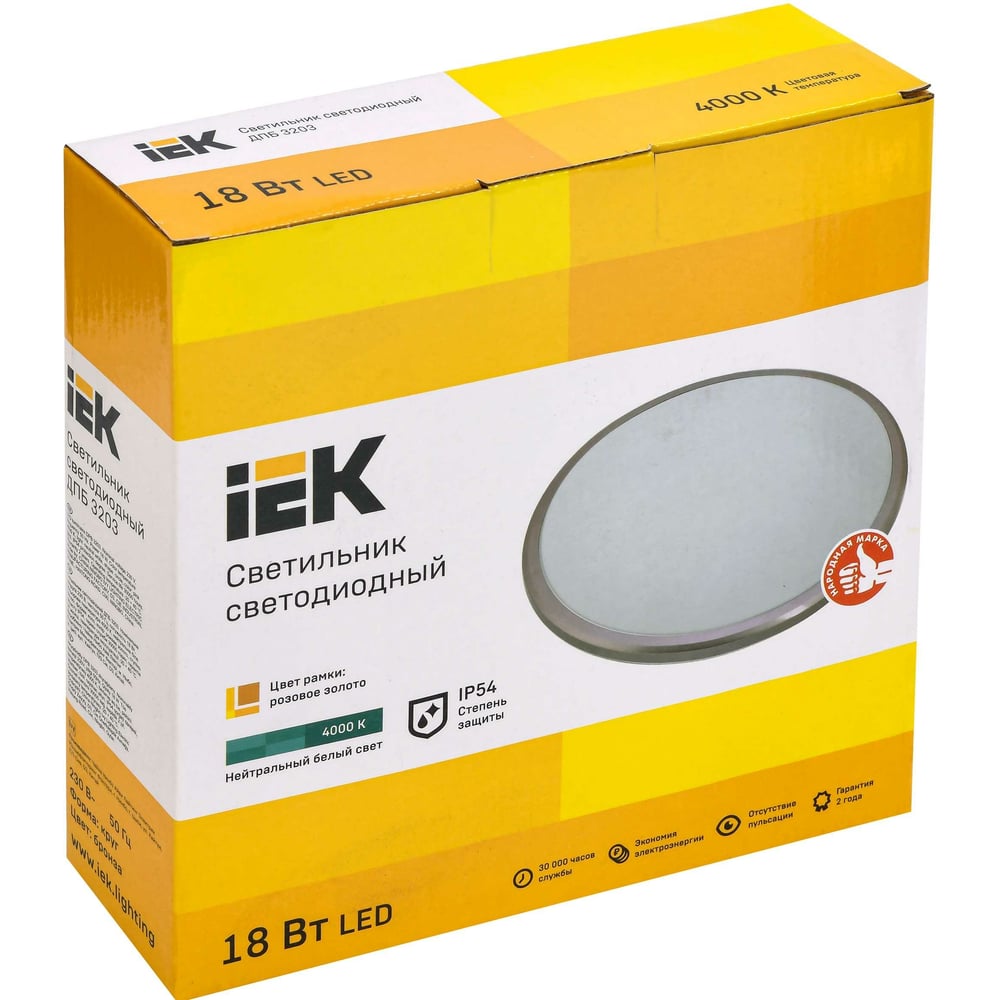 Светильник IEK LED ДПБ 3203 18Вт, IP54, 4000K, круг, розовое золото LDPB0-3203-18-4000-K01