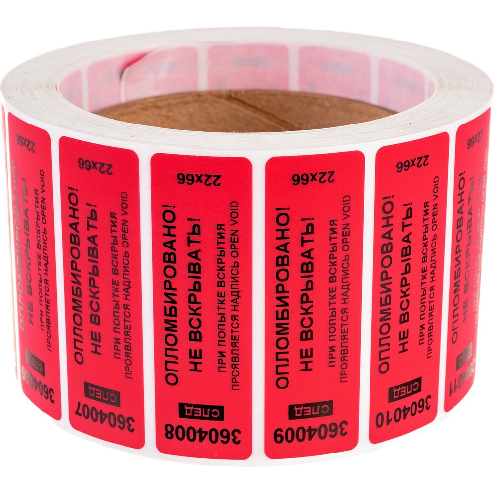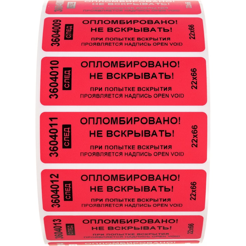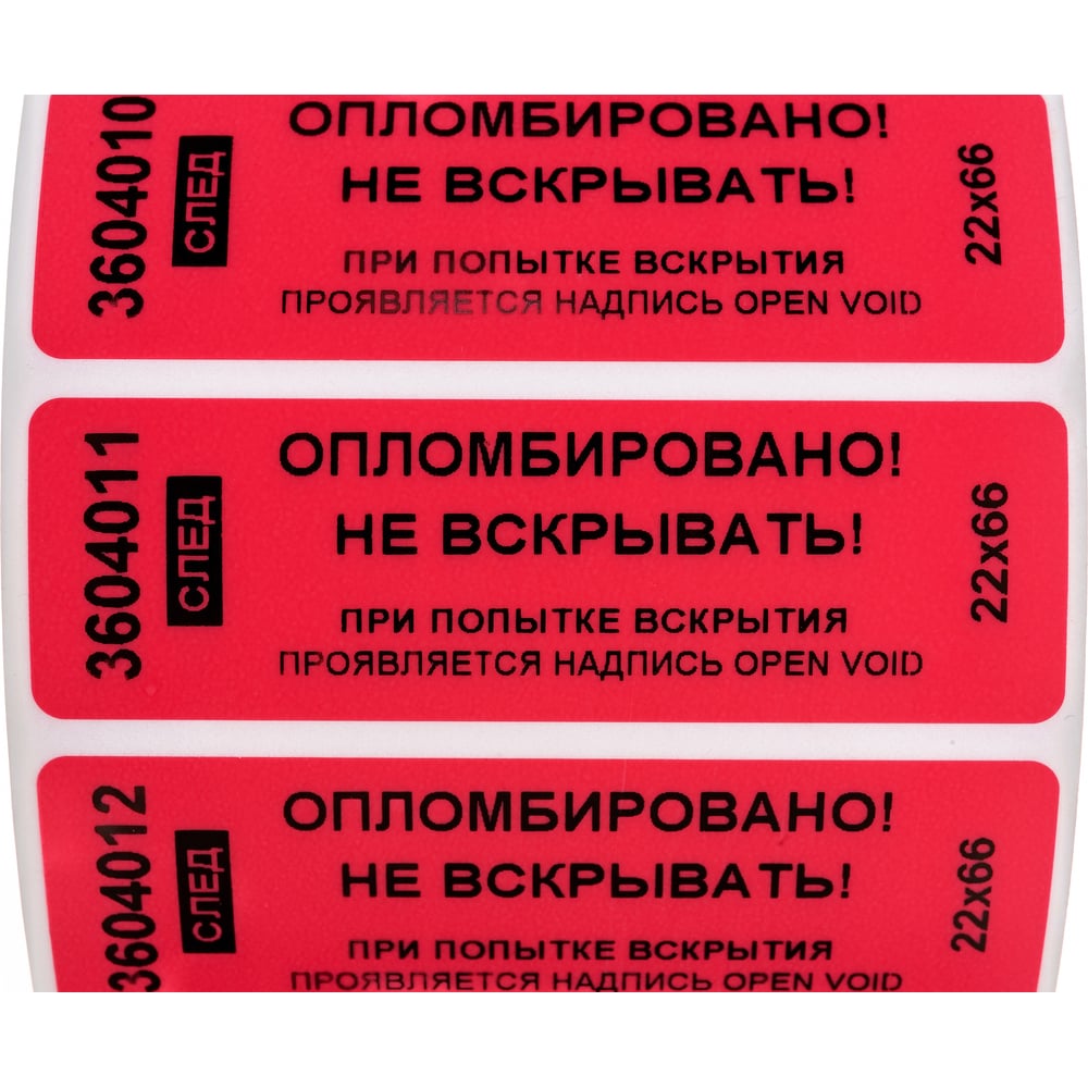 Номерная наклейка, оставляющая след ООО Пломба.Ру 22х66 мм, красная, 1000 шт. Наклейка 22*66