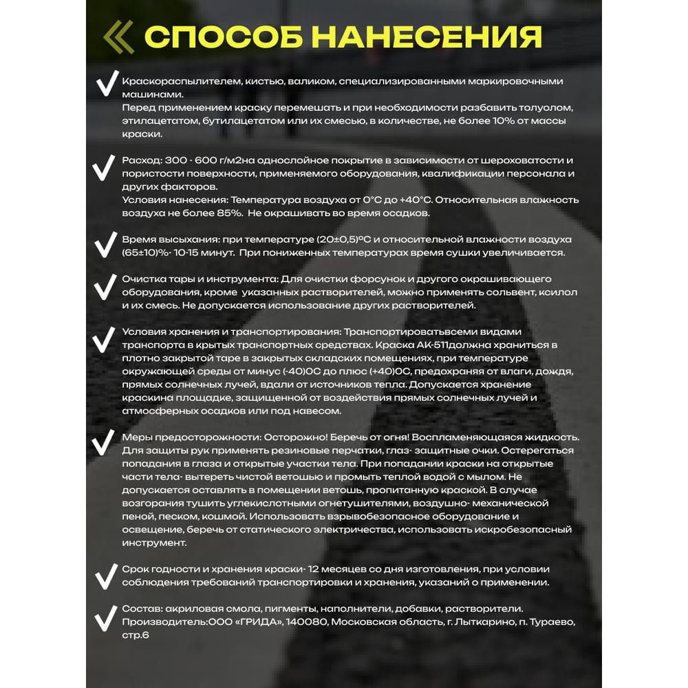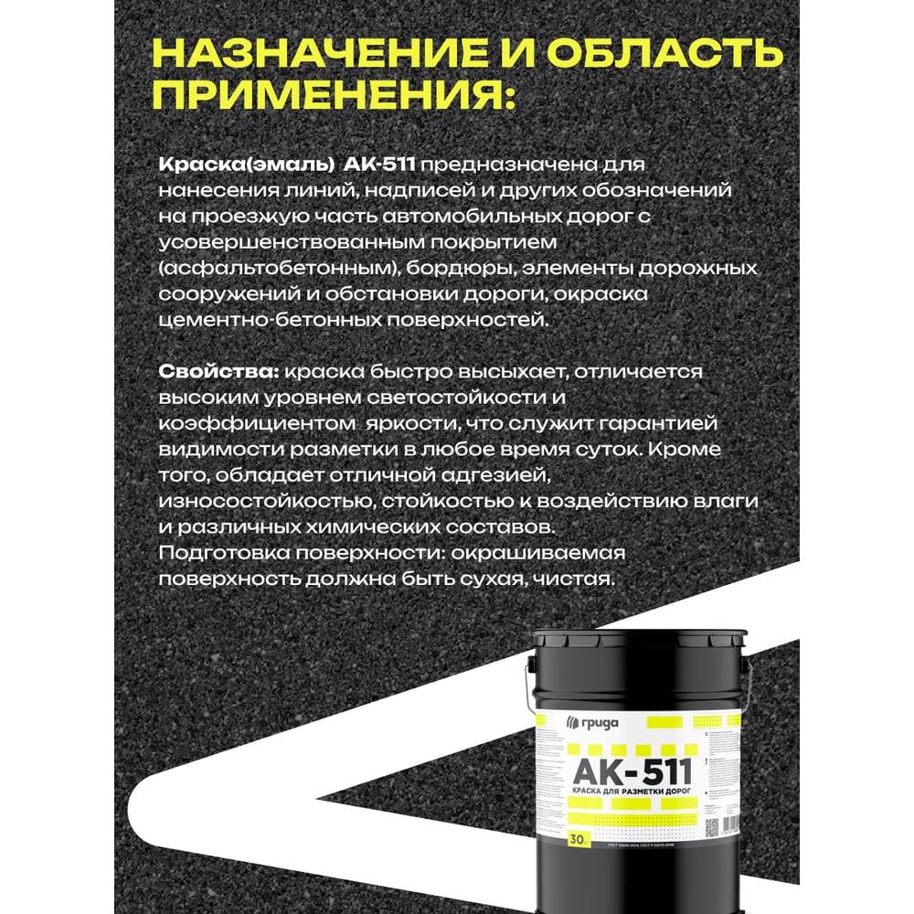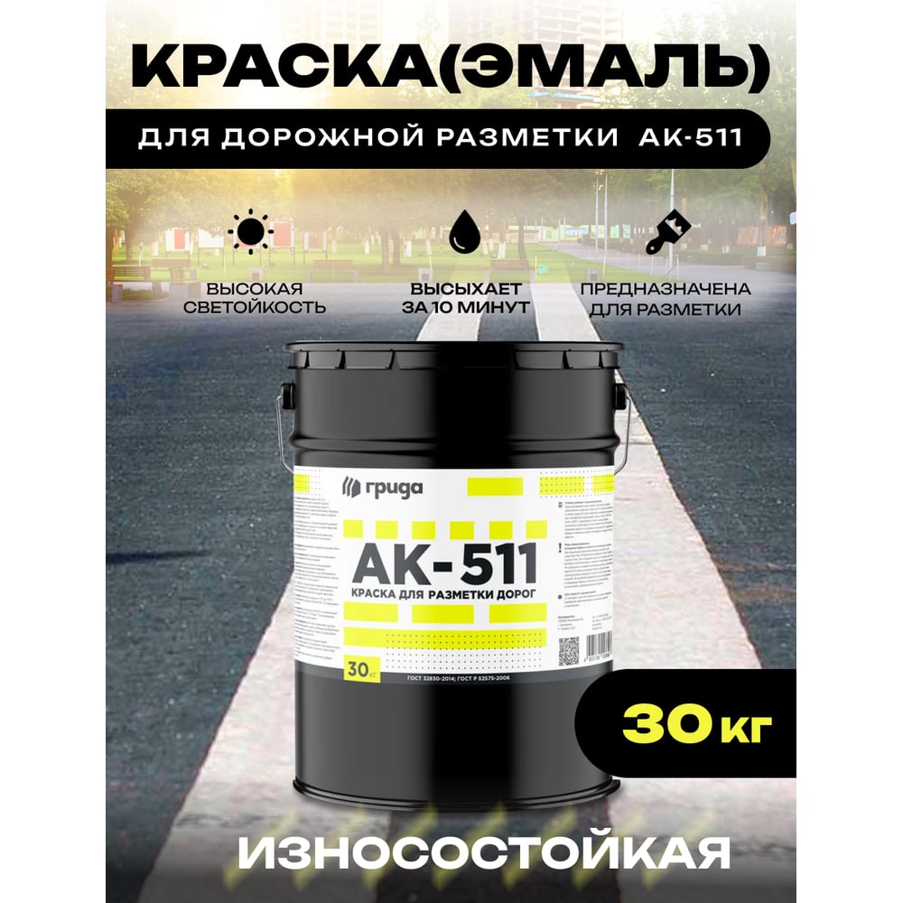 Краска для разметки дорог ГРИДА АК-511 белая, 30 кг 214279 НФ-00000345