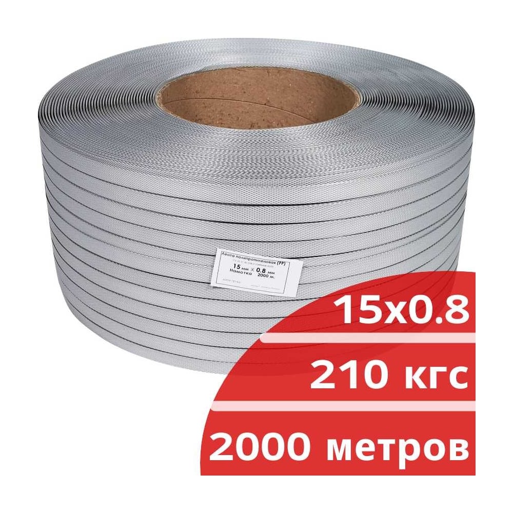 Лента полипропиленовая Кордленд 15х0,8 мм х 2 км, 210 кгс, серый, М/ПА PP-00658
