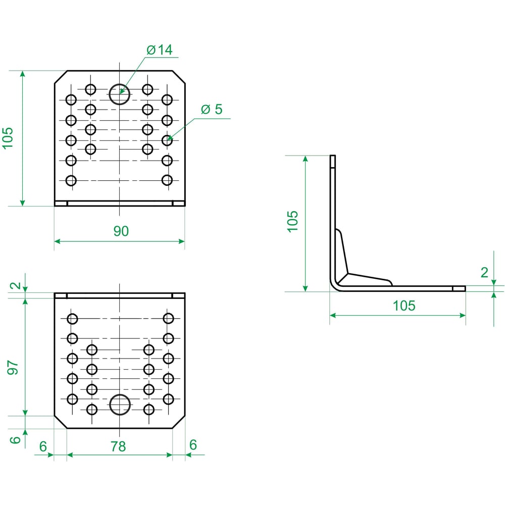 Крепежный уголок усиленный РК ГРУП 105x90х1.8 (25шт.) РК000000522