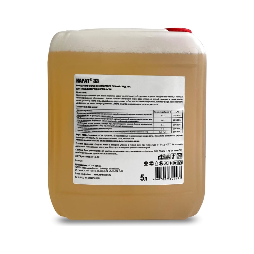 Концентрированное кислотное пенное моющее средство Карат 5 л 4607002304431