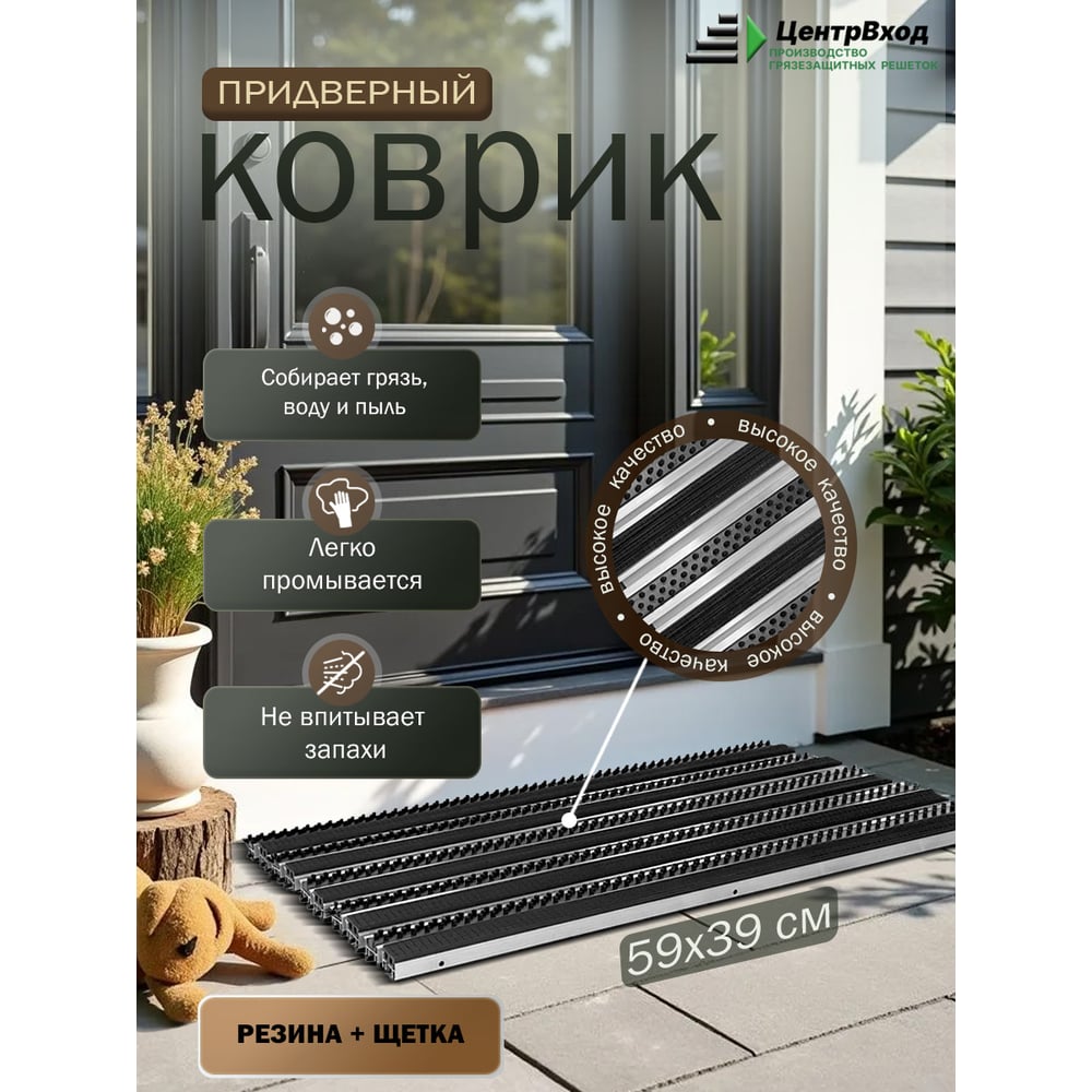 Грязезащитная придверная решетка ООО ПК ЦентрВход резина-щетка, размер 390х590 мм 731EX05