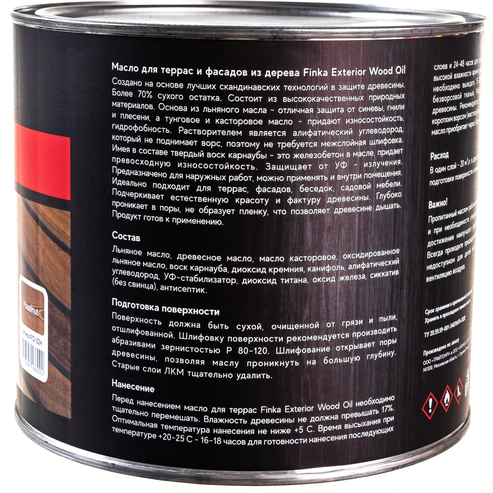 Масло для террас и фасадов Finka Exterior Wood Oil для внутренних и наружных работ, льняная основа, лесной орех (Нazelnut), 2.2 л FO-22H