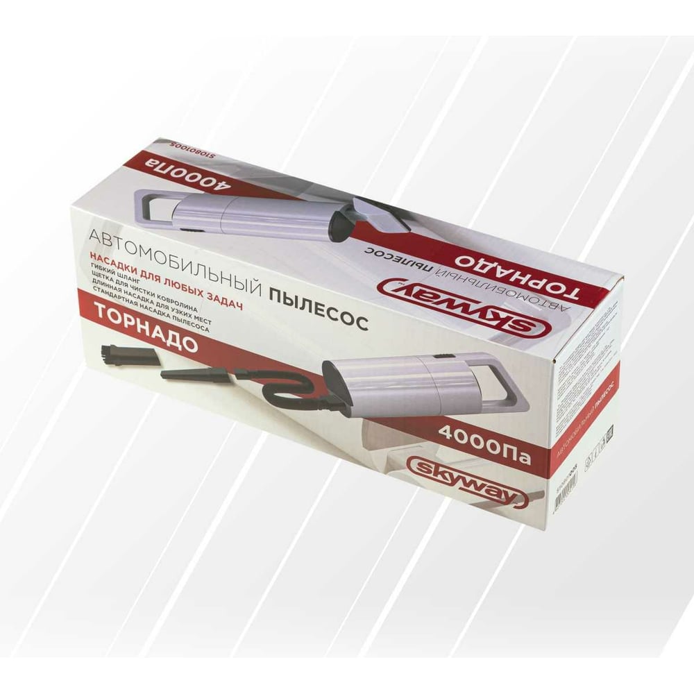 Пылесос SKYWAY ТОРНАДО 4000 Па, 60 Вт, 12 В, 4 насадки, в сумке S10801005