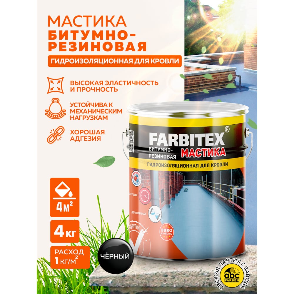 Битумно-резиновая мастика Farbitex 4 кг 4300003457