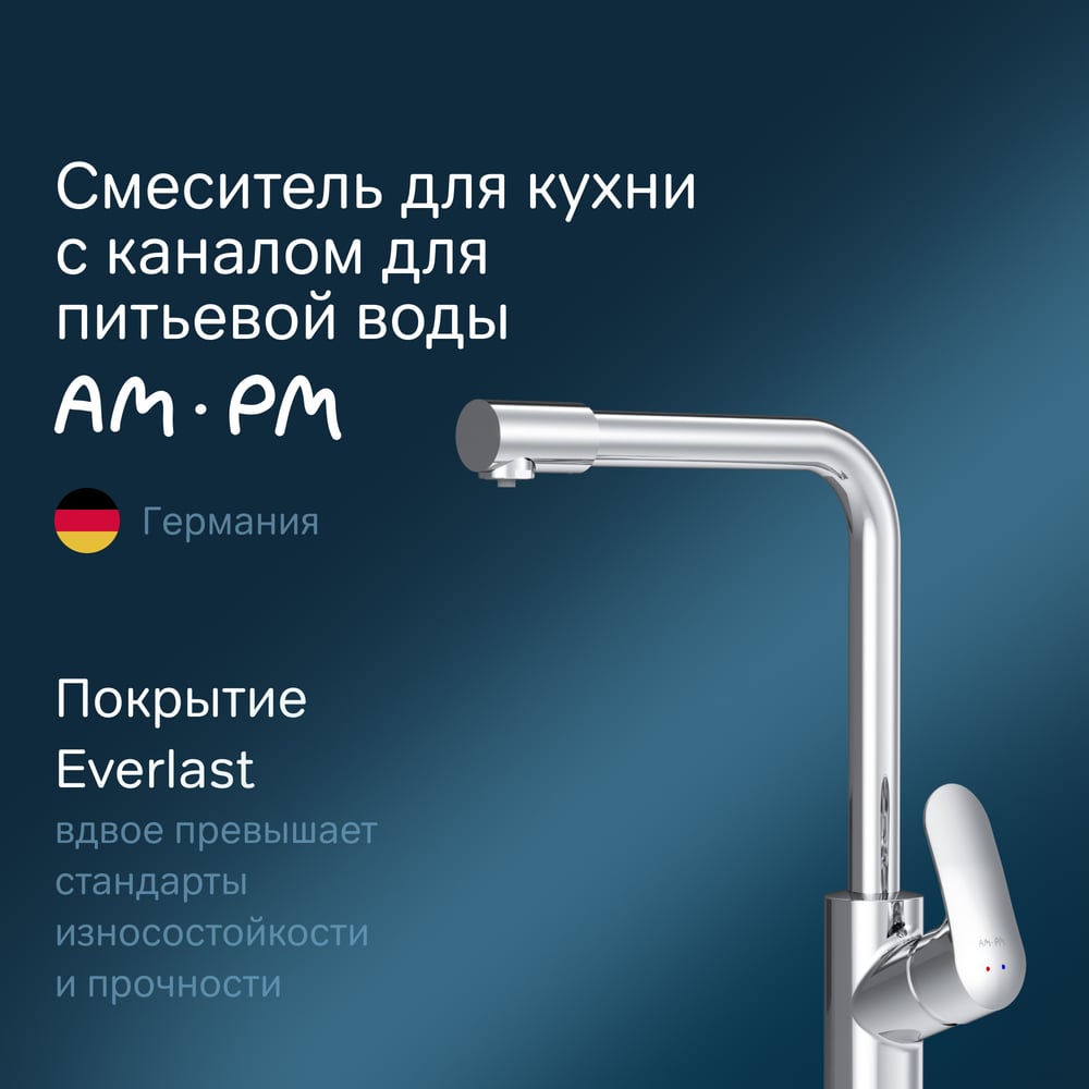 Смеситель для кухни AM.PM Like с каналом для питьевой воды, L-излив, хром F8005700