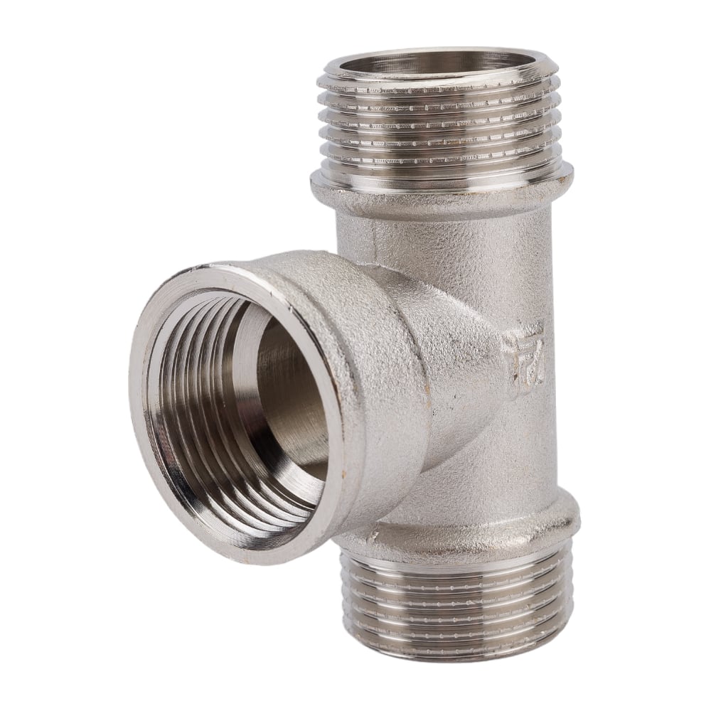 Материал никелированная латунь Класс товара полупрофессиональный Тип фитинга тройник Размеры резьб 3/4-3/4-3/4 дюйм Тип соединения наружная-внутренняя-наружная Размер верхнего отверстия 3/4F Размер боковых отверстий 3/4M-3/4M