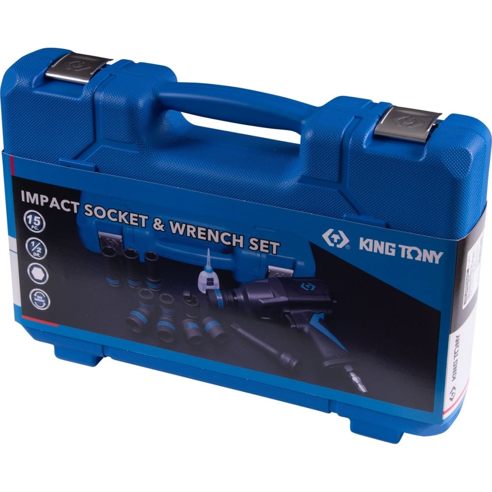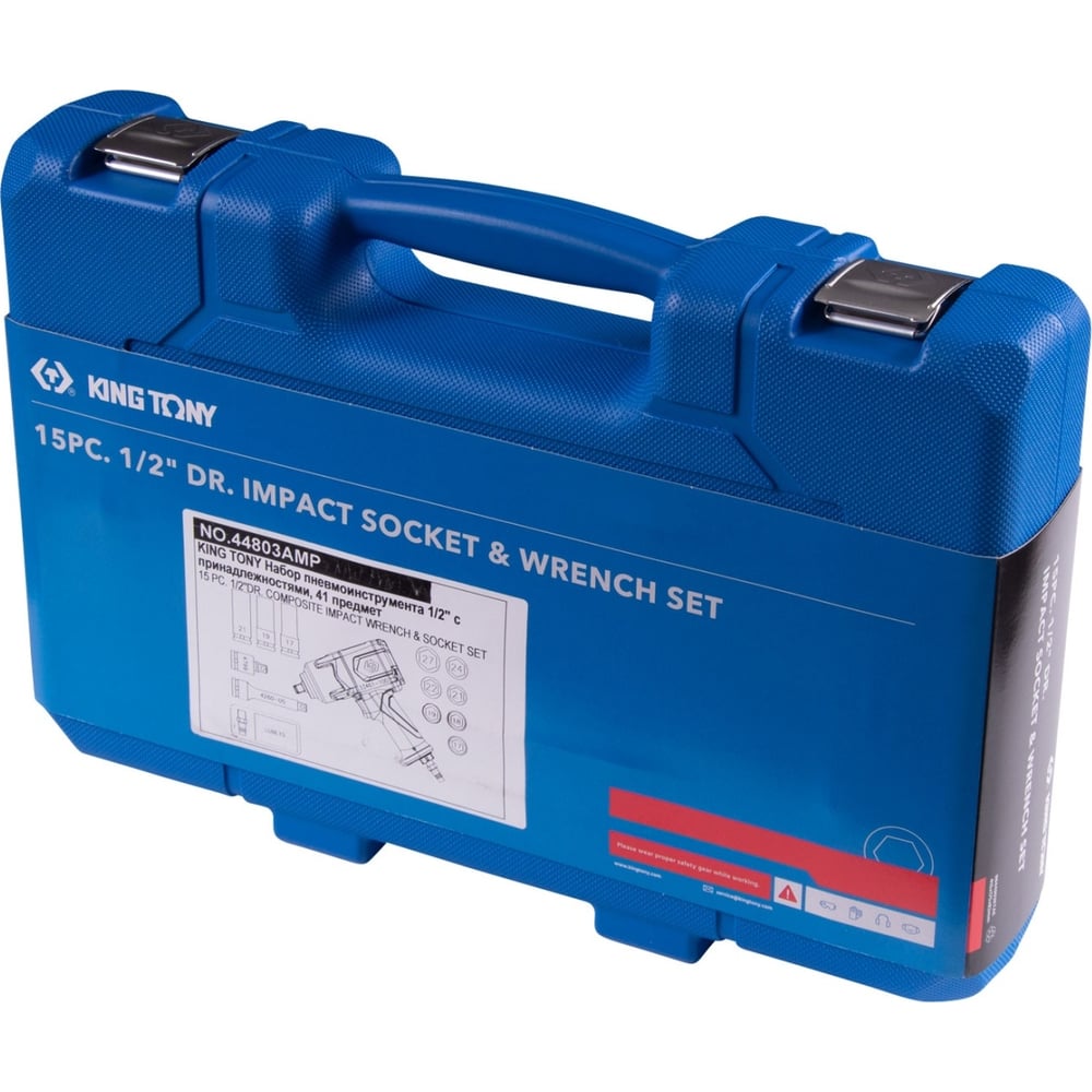 Набор пневмоинструмента KING TONY 1/2 с принадлежностями, 15 предметов 44803AMP