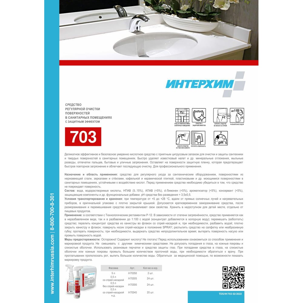 Средство регулярной очистки поверхностей в санитарных помещениях ИНТЕРХИМ 703 с защитным эффектом, 0.5 л ih70345
