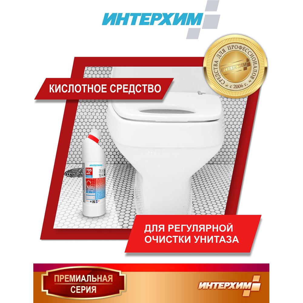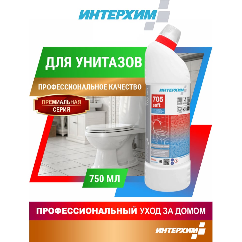 Усиленный гель для регулярной очистки поверхностей в санитарных помещениях ИНТЕРХИМ 705 SOFT 0.75 л ih73547
