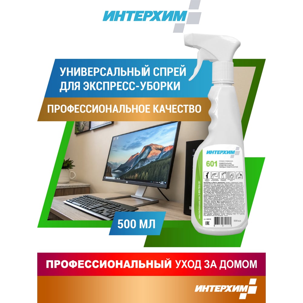 Готовое к применению универсальное средство очистки твердых поверхностей ИНТЕРХИМ 601 0.5 л ih60105
