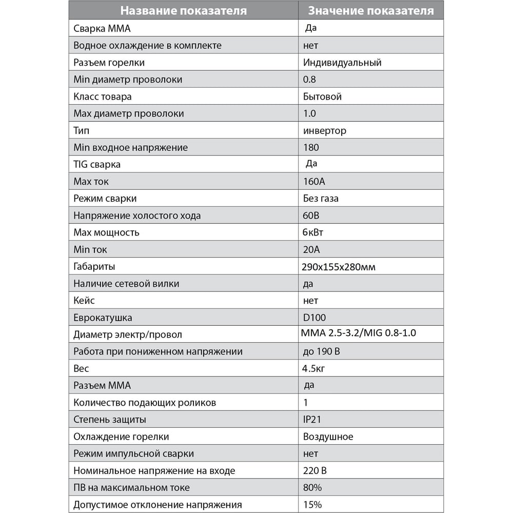| Мах. диаметр электрода | 3.2 мм |