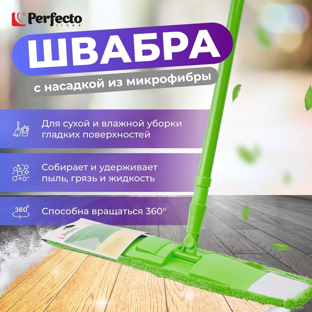 Швабра для пола PERFECTO LINEA Solid с насадкой из микрофибры, зеленая 43-492023