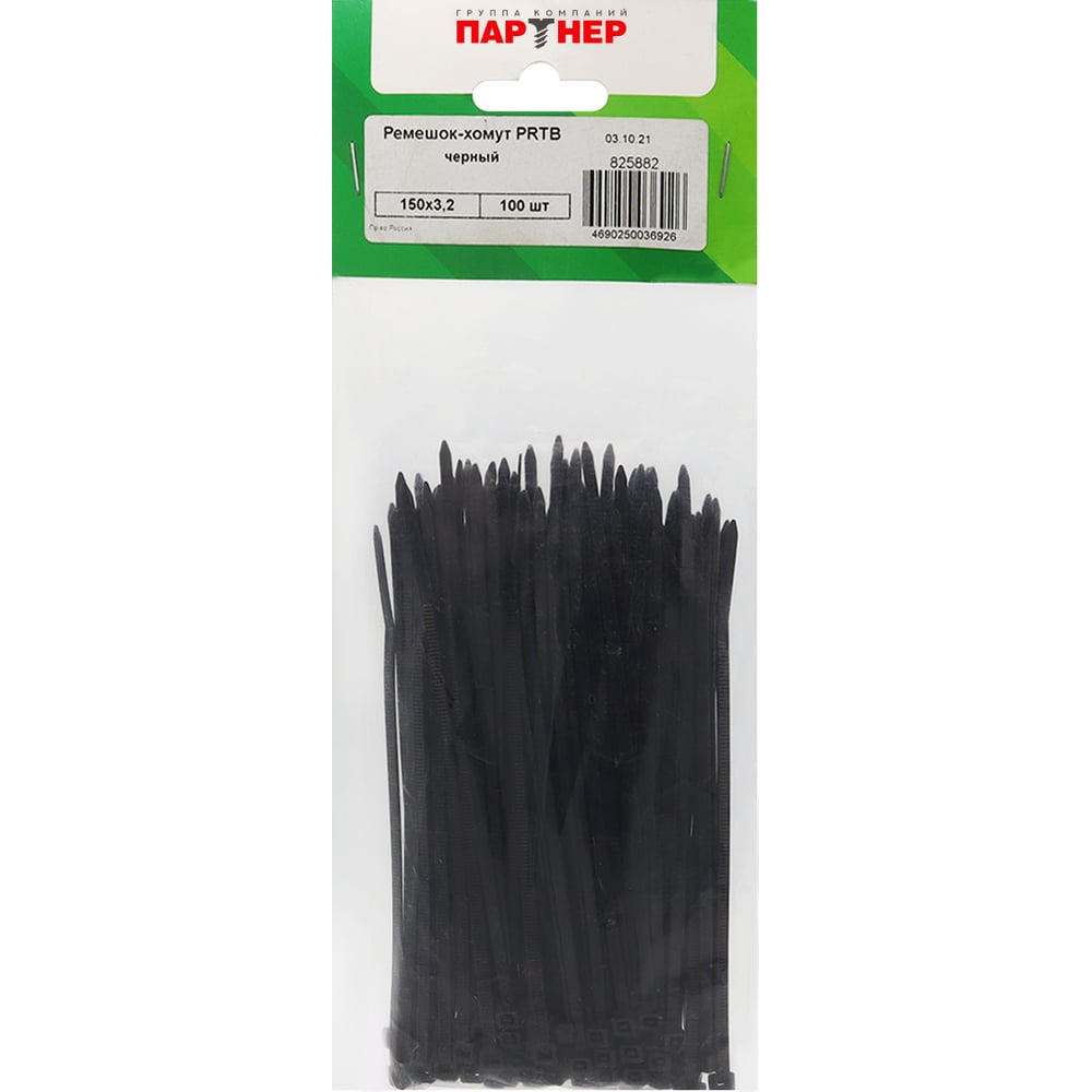 Ремешок-хомут Партнер PRTB 150x3,2 мм, черные, 100 шт. 825882