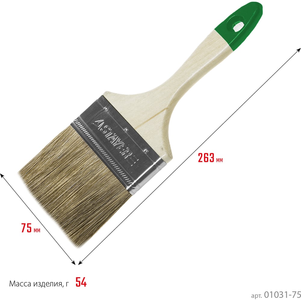 Плоская кисть STAYER LASUR смешанная щетина, деревянная ручка, для высокотекучих ЛКМ, 75мм, 3" 01031-75