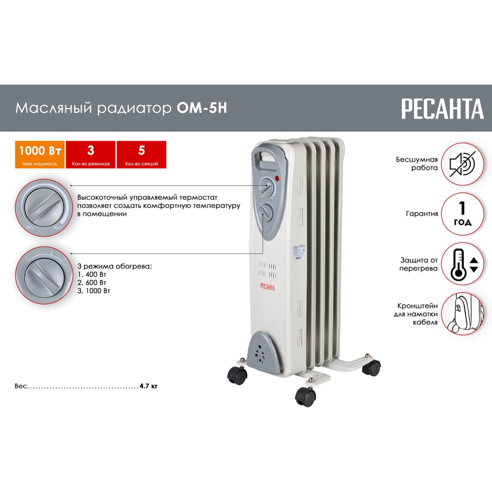 Масляный радиатор Ресанта ОМ-5Н 67/3/6
