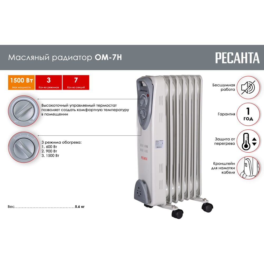 Масляный радиатор Ресанта ОМ-7Н 67/3/7