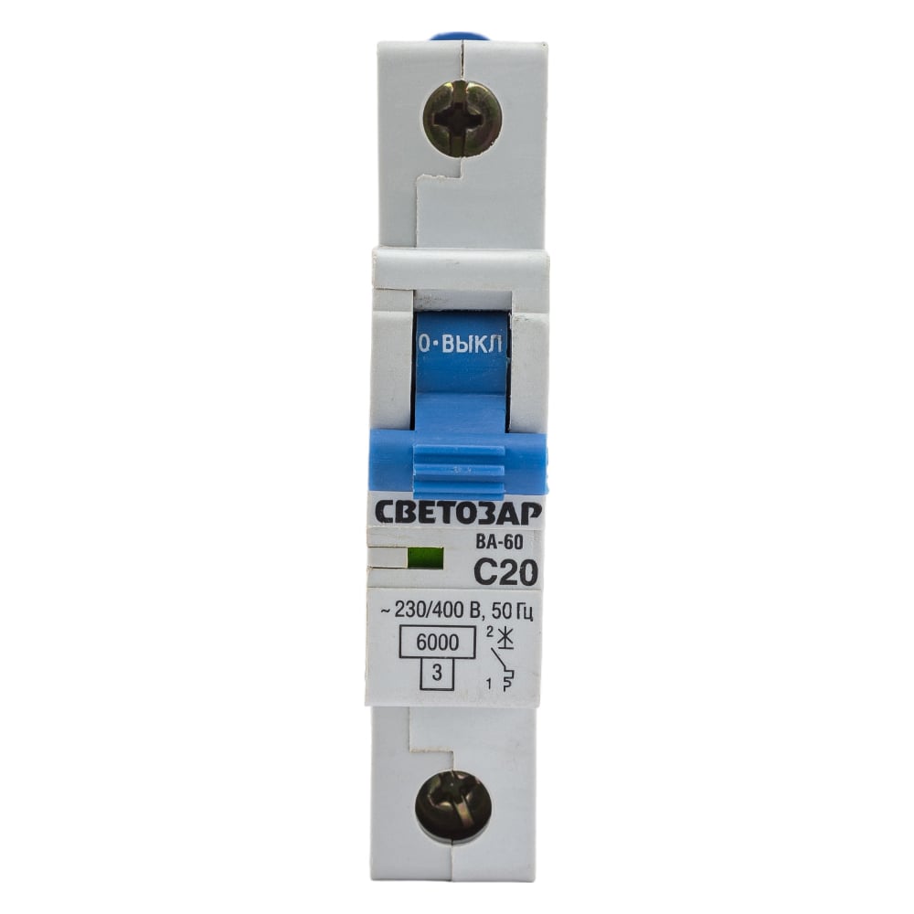 Автоматический выключатель СВЕТОЗАР 1-полюсный, 20 A, C, откл. сп. 6 кА, 230 / 400 В SV-49061-20-C