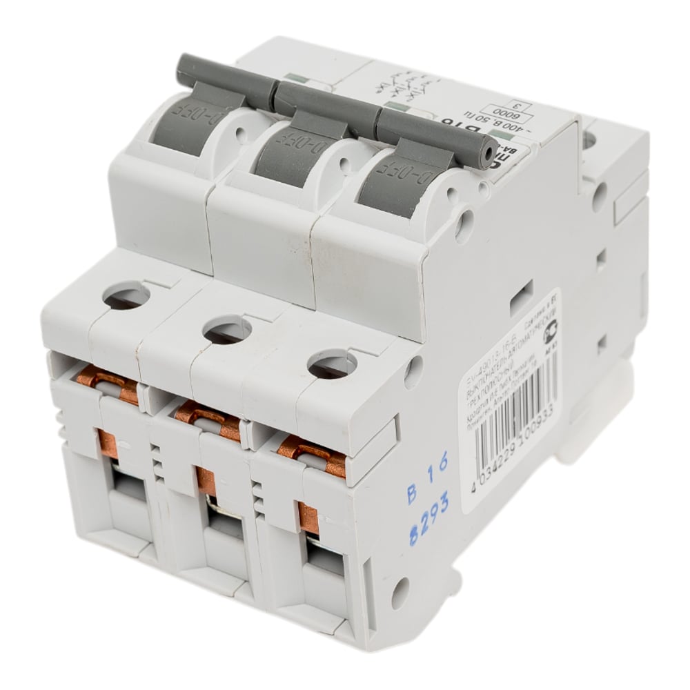 Автоматический выключатель СВЕТОЗАР ПРЕМИУМ 3-полюсный, 16 A, B, откл. сп. 6 кА, 400 В SV-49013-16-B