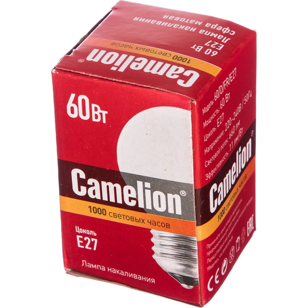 Электрическая лампа накаливания с матовой колбой MIC Camelion 60/D/FR/E27, 9871