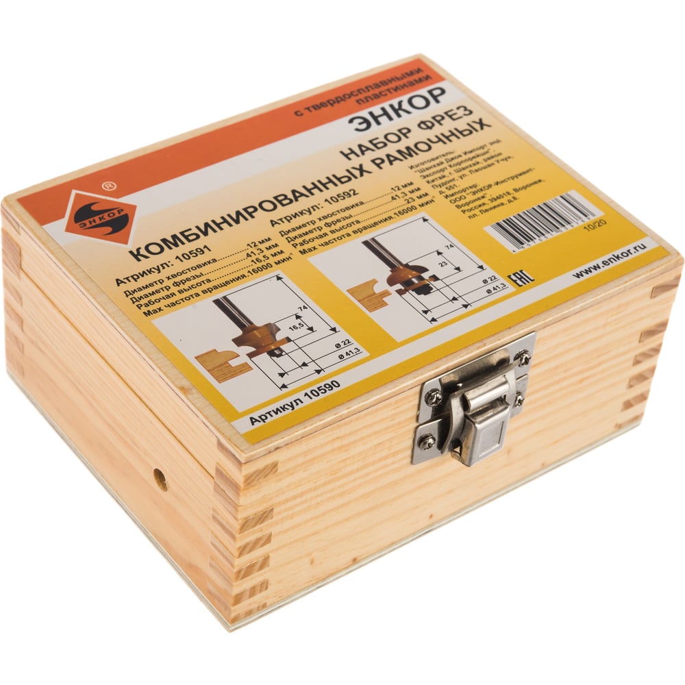 Набор фрез комбинированных рамочных (2 шт; 41.3х23 мм; R 12 мм; хвостовик 12 мм) по дереву Энкор 10590