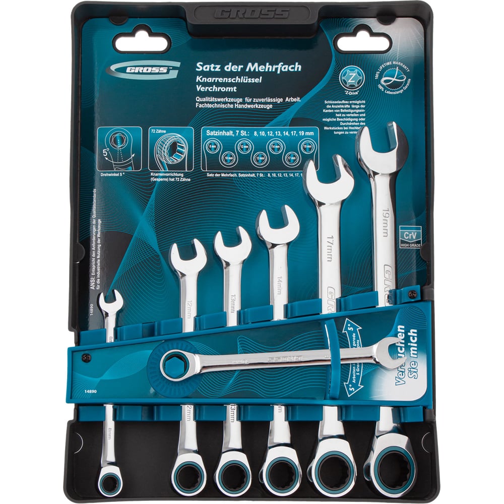 Набор комбинированных ключей с трещоткой 8-19 мм GROSS 14890