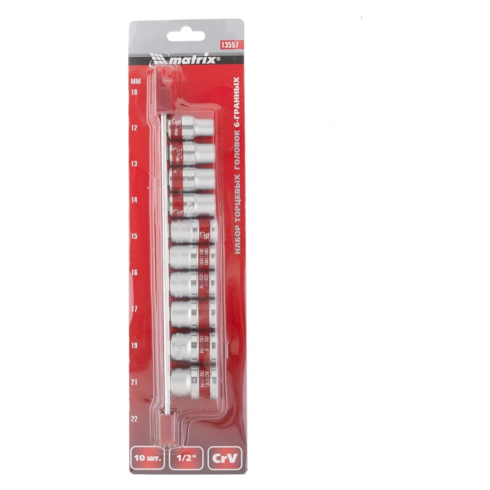 Набор торцевых головок (6-гранные; 1/2"; 10-22 мм; 10 шт.) MATRIX 13557