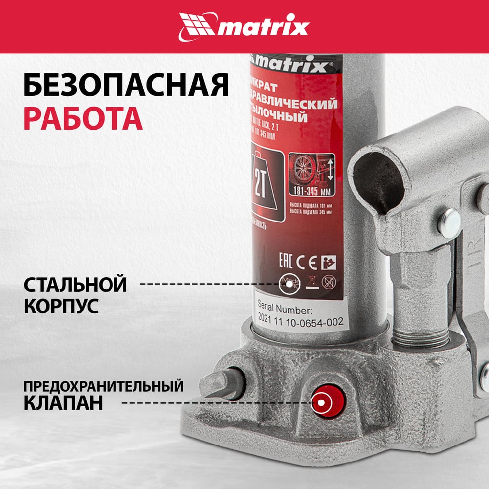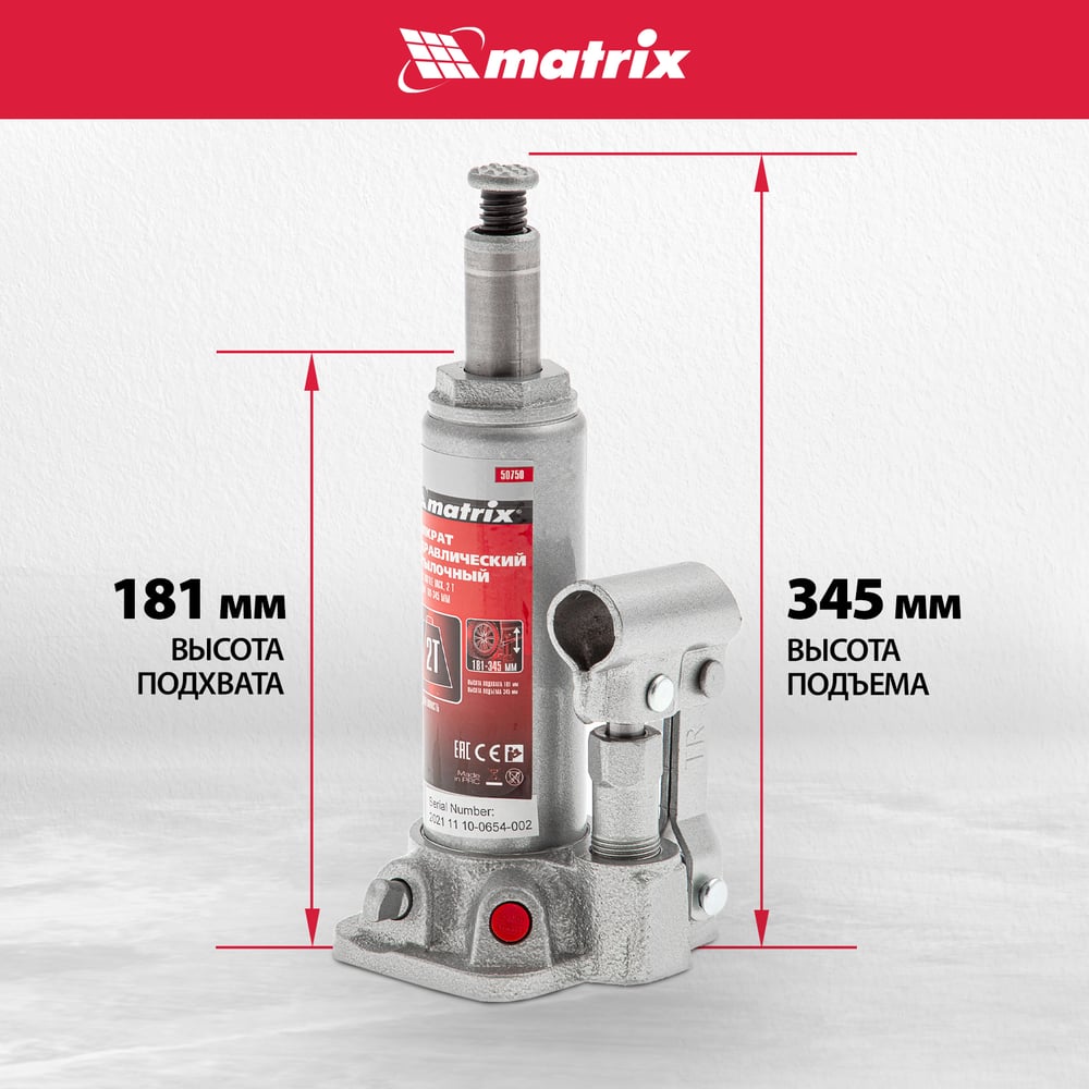 Гидравлический бутылочный домкрат MATRIX MASTER 50750