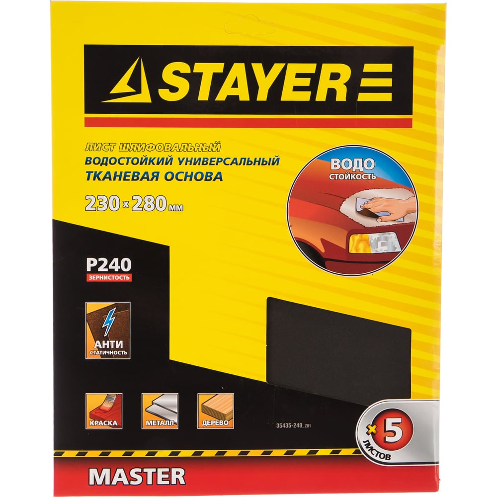 Шлифлист универсальный водостойкий 5 шт. (230х280 мм; Р240) Stayer 35435-240_z01