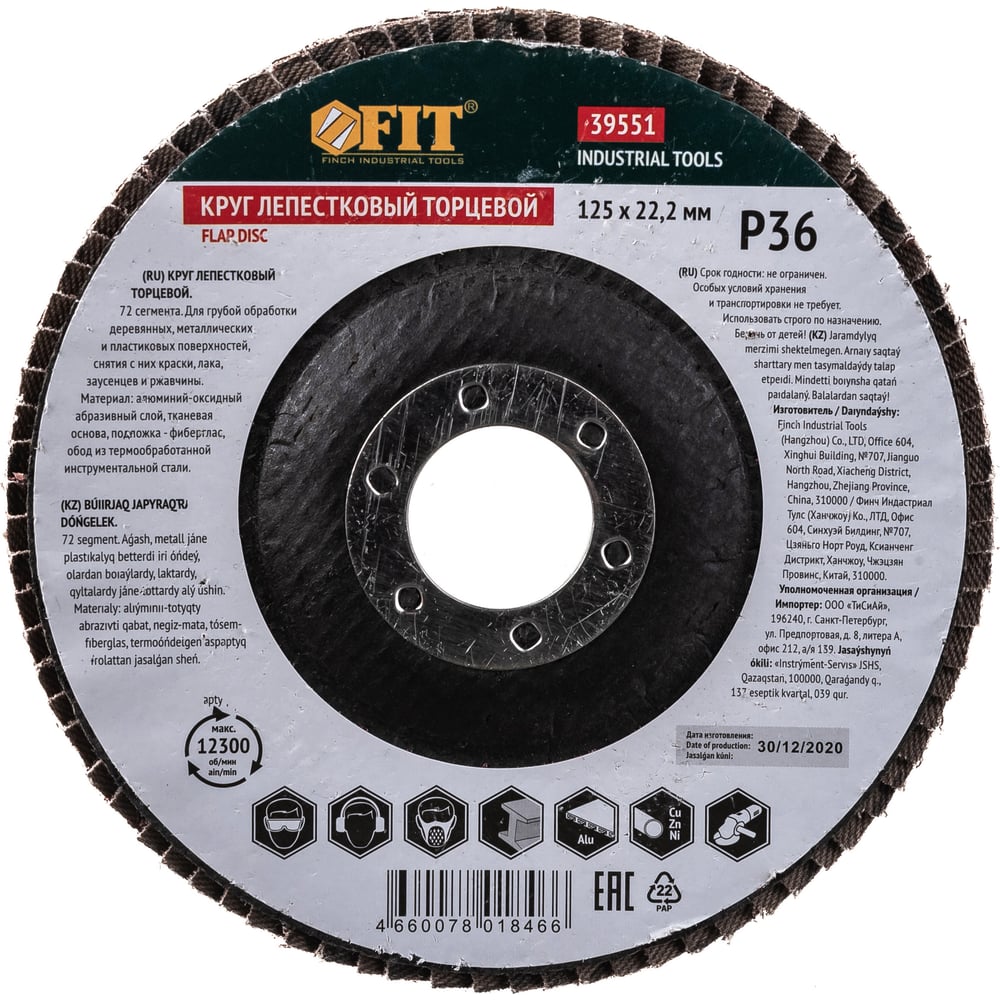Диск наждачный лепестковый для УШМ (125х22,2 мм; Р36) FIT IT 39551