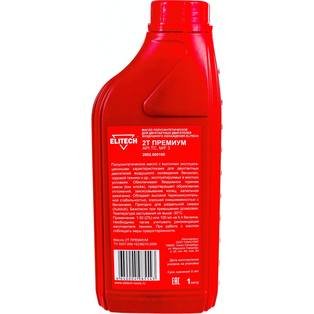 Моторное полусинтетическое масло для 2-х тактных двигателей Elitech 2002.000100