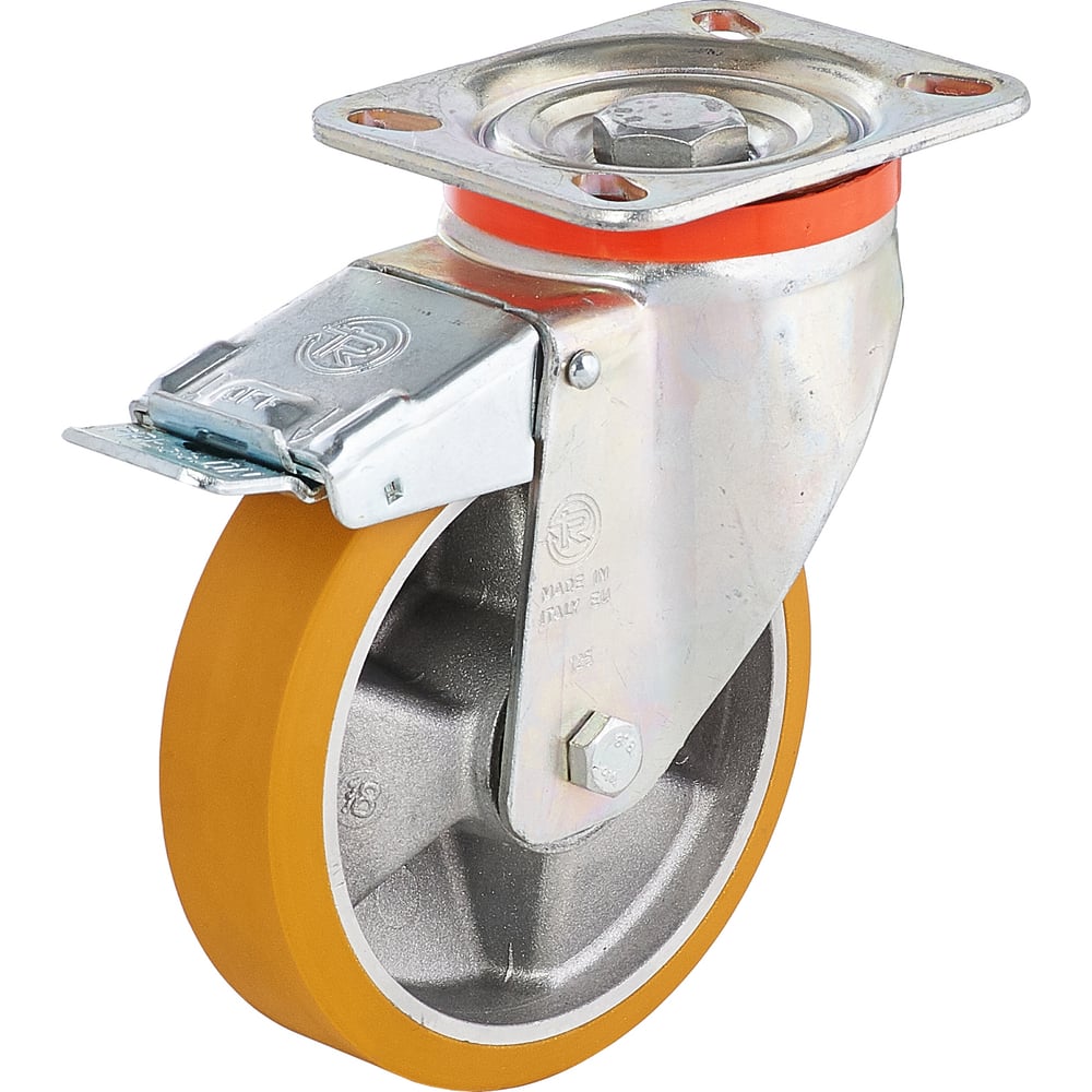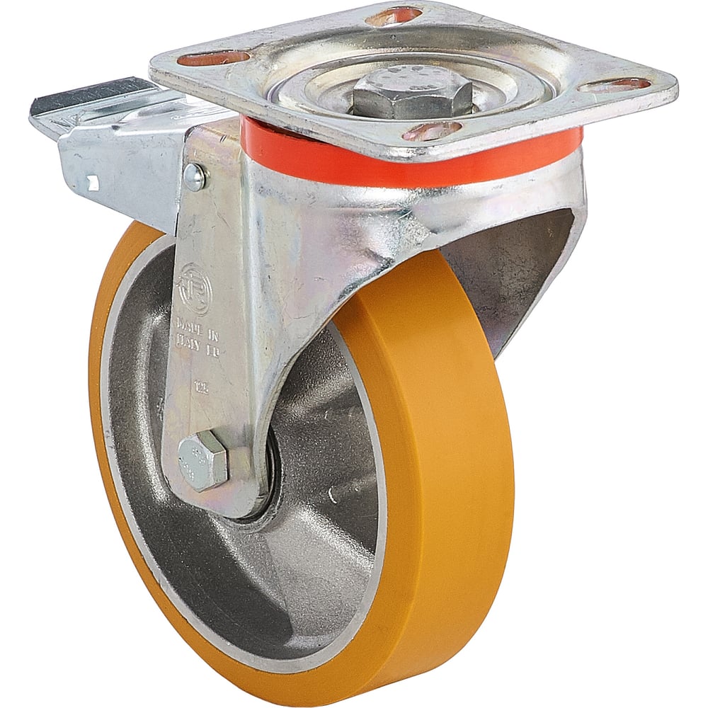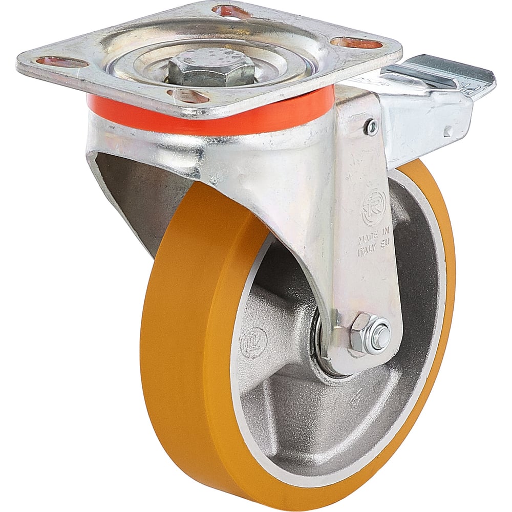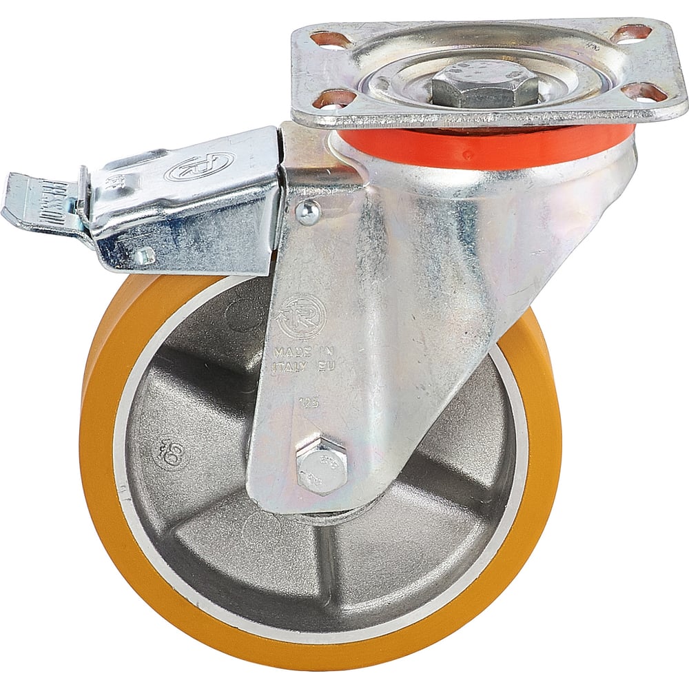 Колесо с вращающейся опорой, пластиной крепления и передним тормозом (100 мм; 250 кг) Tellure rota 656602