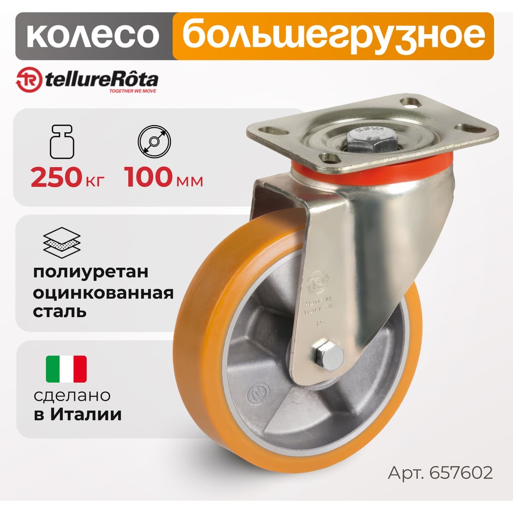 Колесо с вращающейся опорой и пластиной крепления (100 мм; 250 кг) Tellure rota 657602