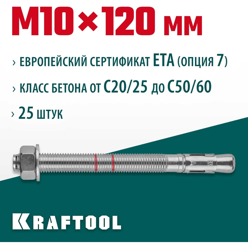 Клиновой анкер KRAFTOOL оцинкованный, М10x120, 25 шт. 302184-10-120