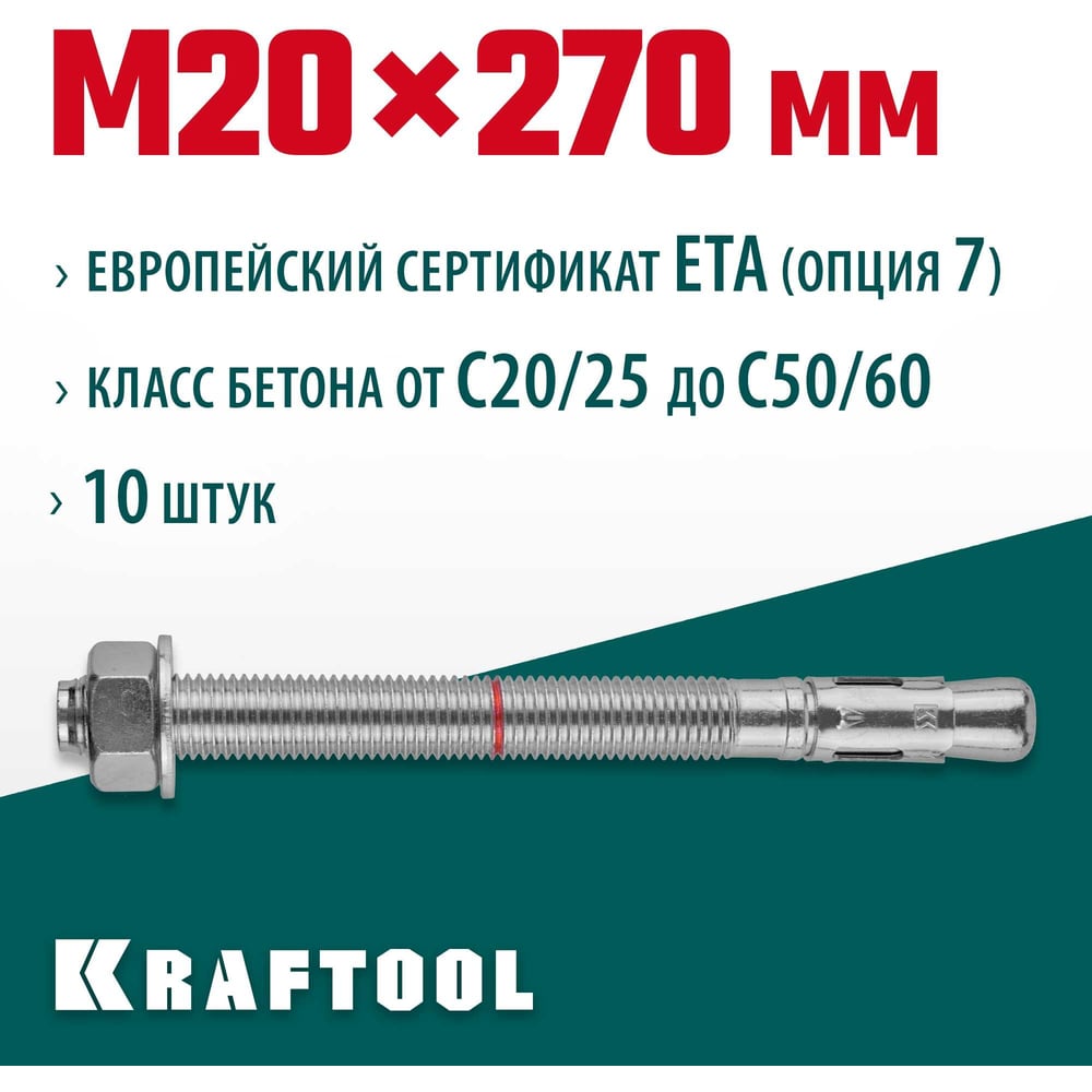 Клиновой анкер KRAFTOOL оцинкованный, М20x270, 10 шт. 302184-20-270