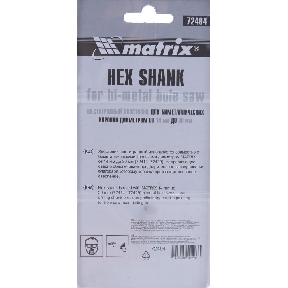 Хвостовик 6-гранный для коронок BIMETAL до 30 мм MATRIX 72494