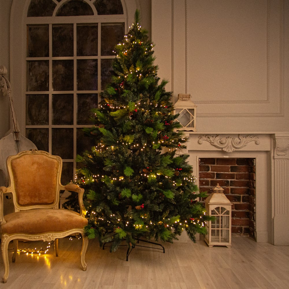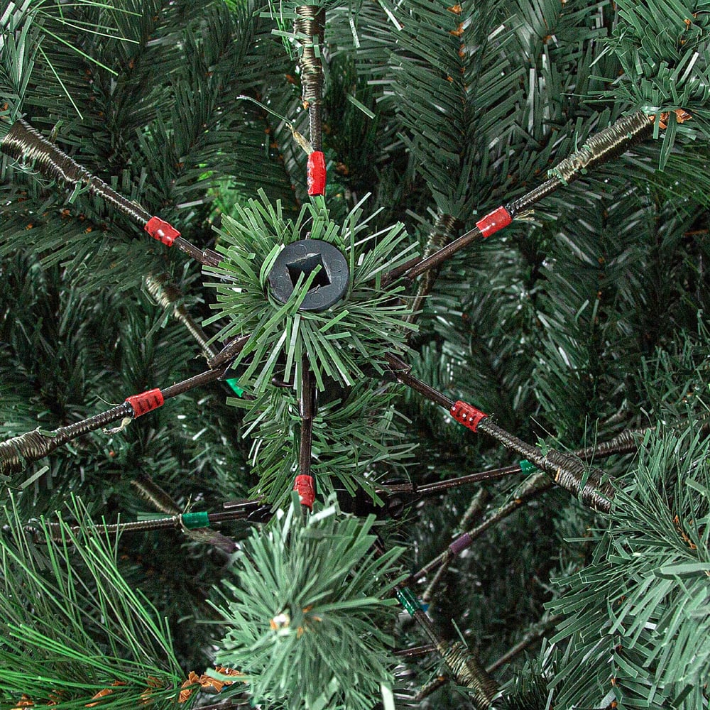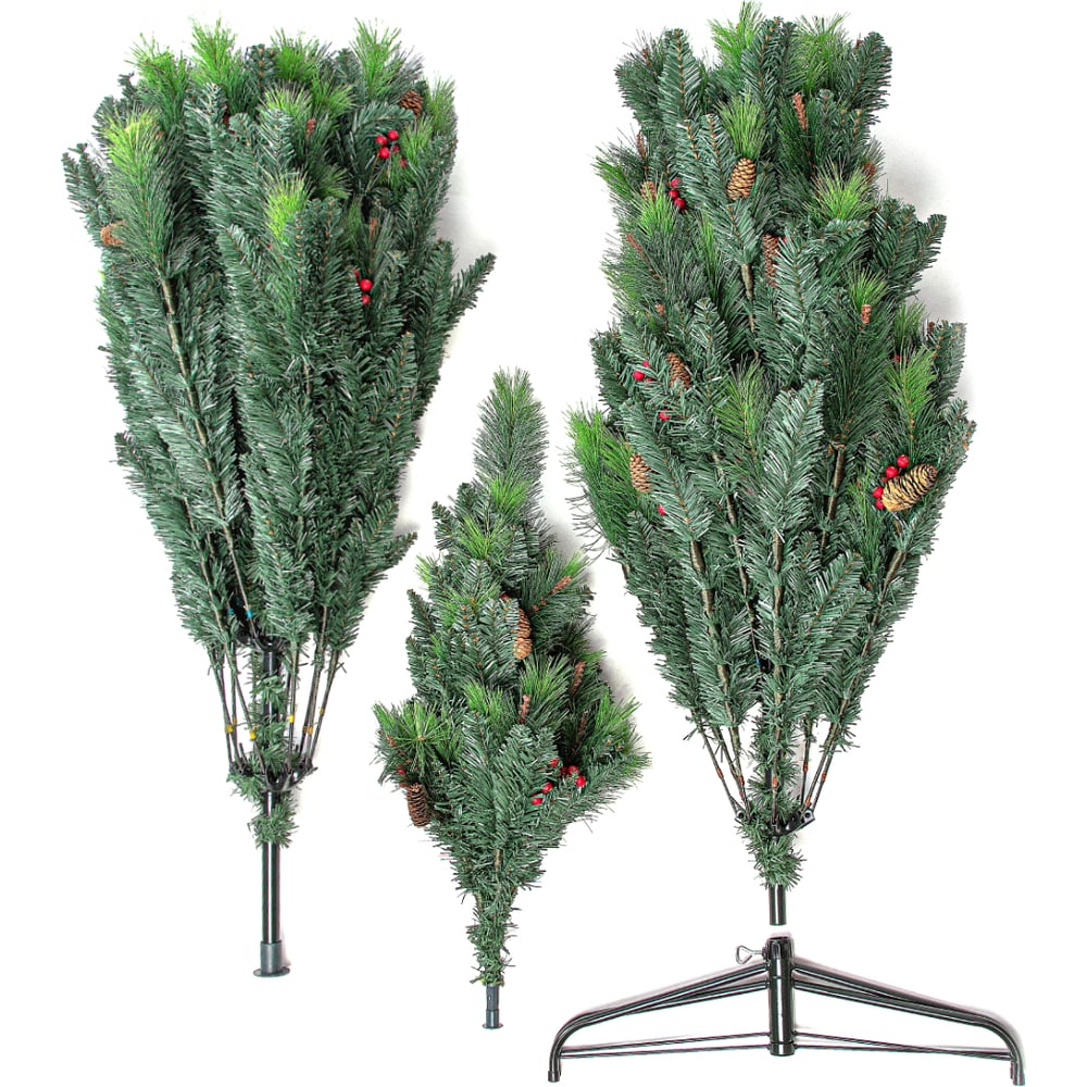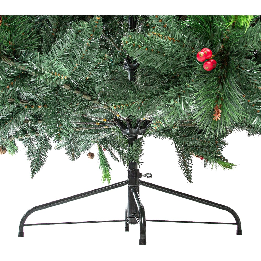 Материал PP (полипропилен), ПВХ (поливинилхлорид) Цвет зеленый Форма классическая Назначение для дома Установка напольная Подставка есть Высота 180 см Материал основания металл Тип конструкции разборная Количество веток 743 шт Диаметр нижнего яруса 132 см Крепление веток шарнирное Вид дерева ель Тип хвои ПВХ, леска Декоративные элементы шишки
