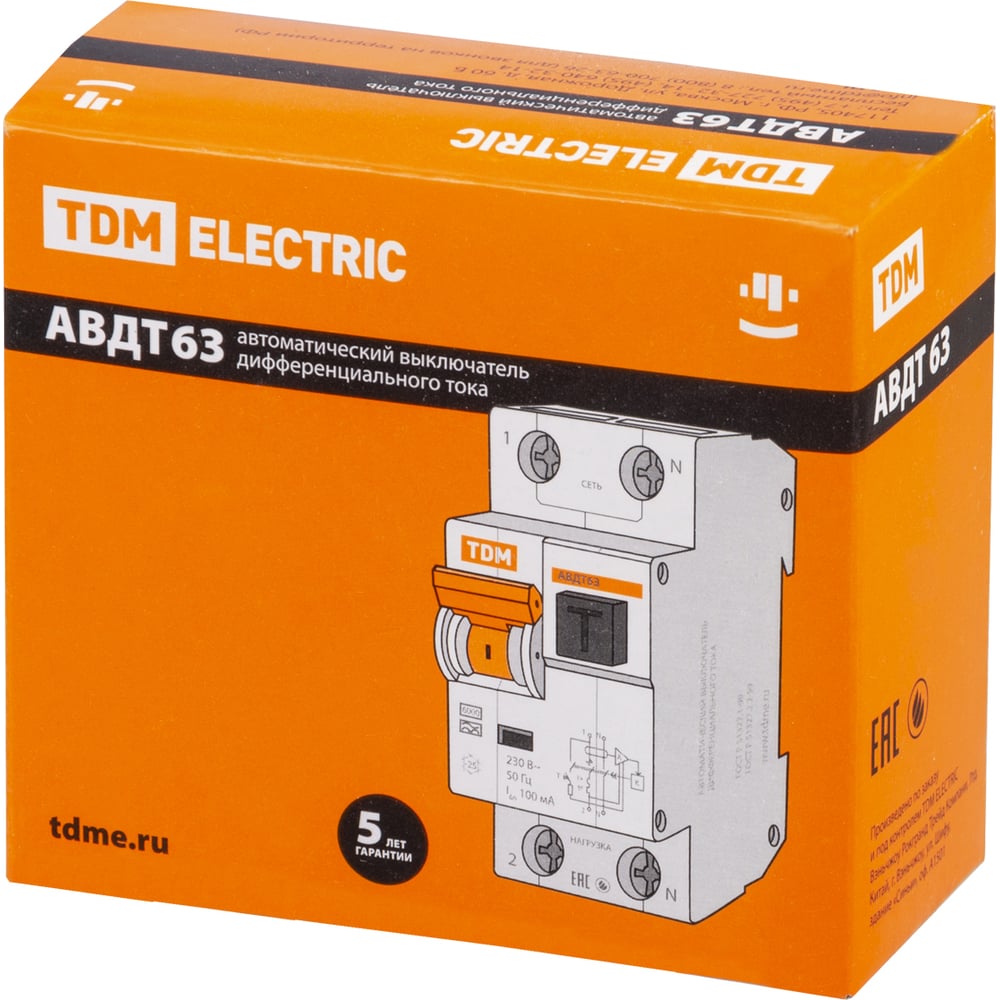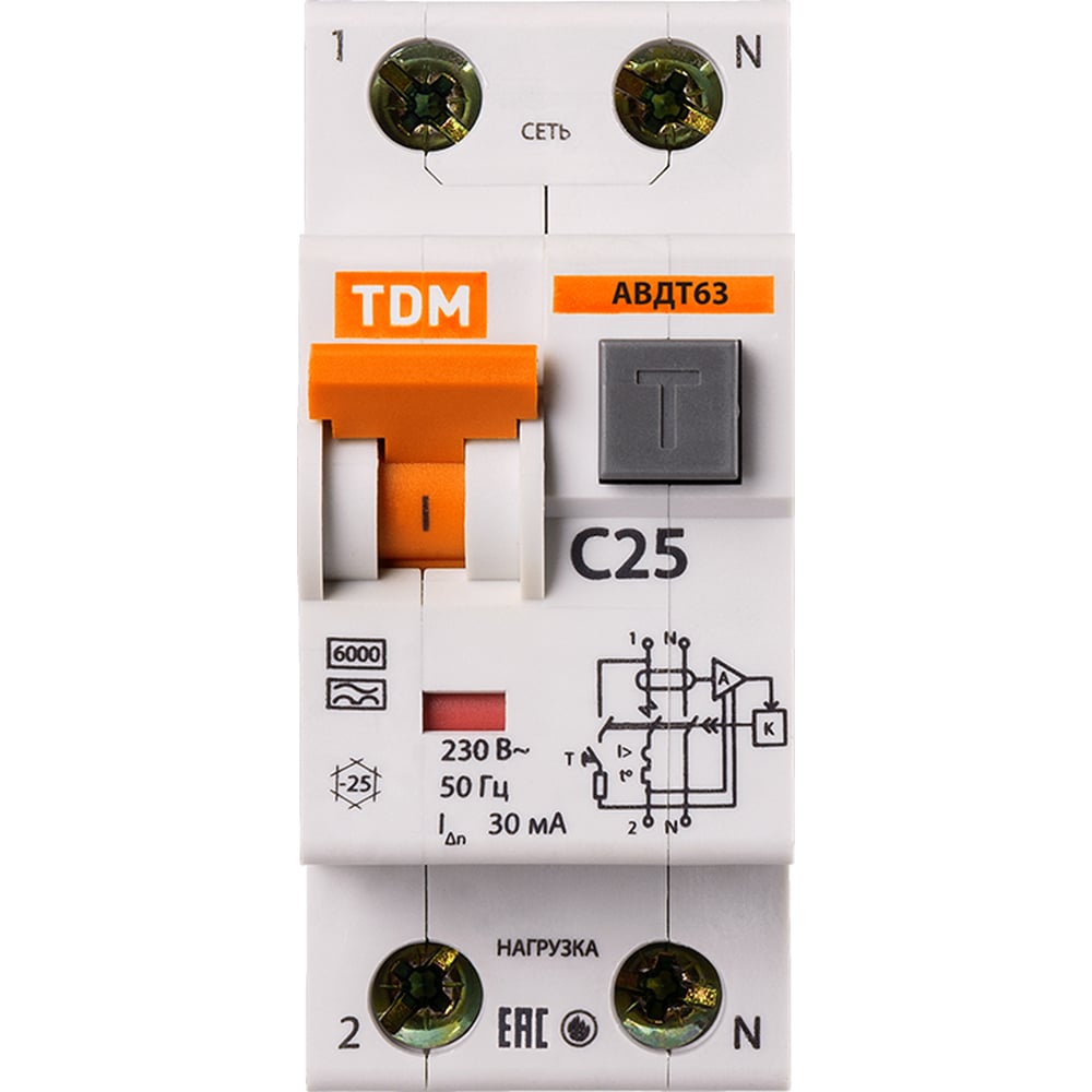 Автоматический выключатель дифференциального тока TDM ELECTRIC АВДТ 63 2P C25 30мА SQ0202-0004