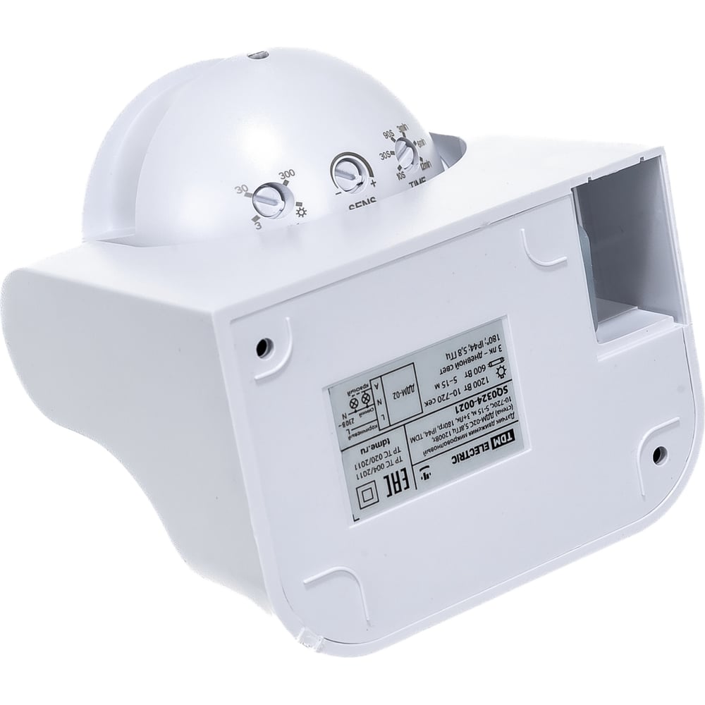 Микроволновый датчик движения TDM ELECTRIC ДДМ-02С 5,8ГГц 1200Вт, 10-720с, 5-15м, 3+лк, 180гр, IP44 SQ0324-0021