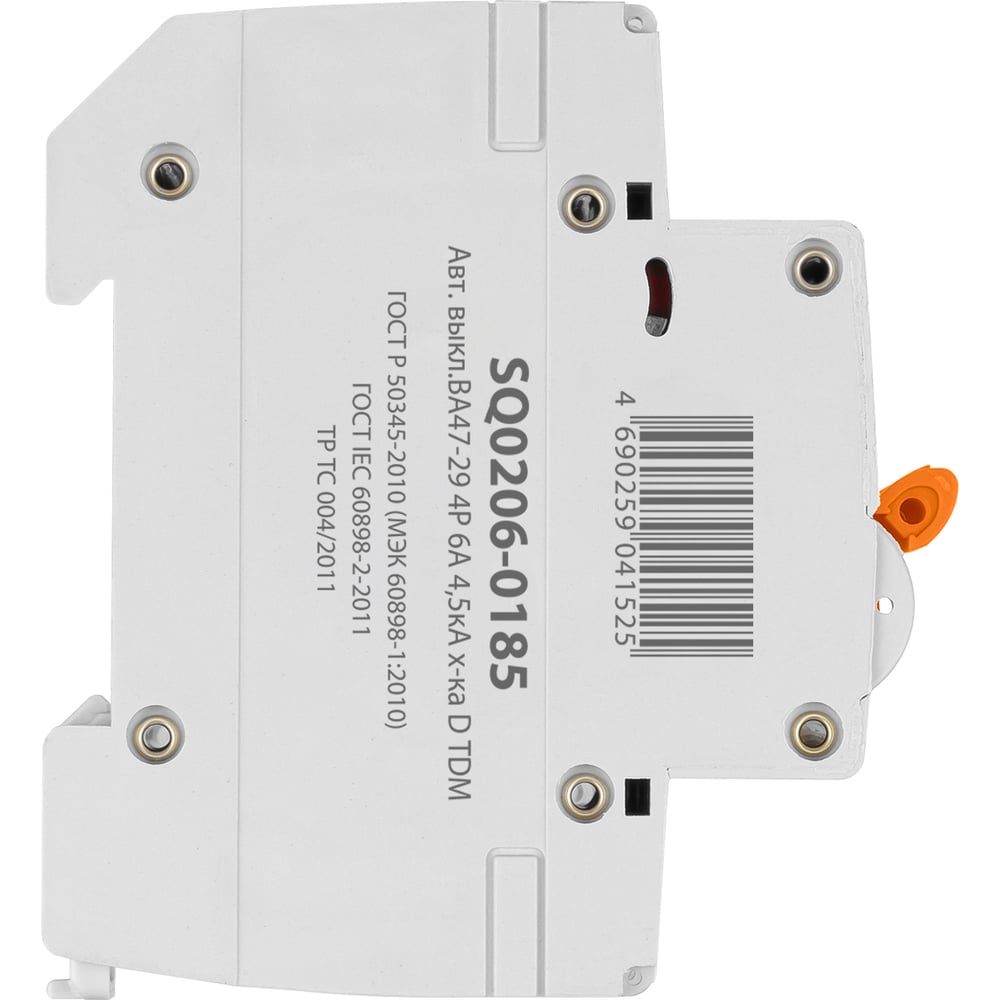 Автомат TDM ВА47-29 4Р, 6 А, 4,5 кА, D SQ0206-0185