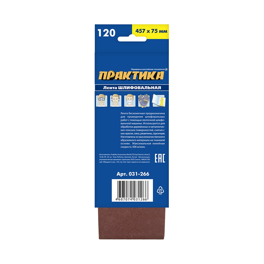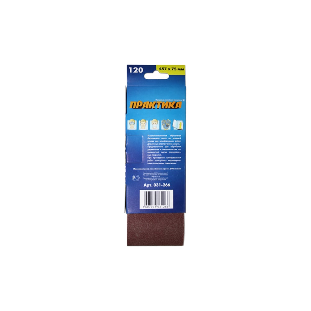 Лента шлифовальная (3 шт; 75х457 мм; P120) ПРАКТИКА 031-266