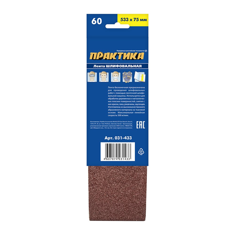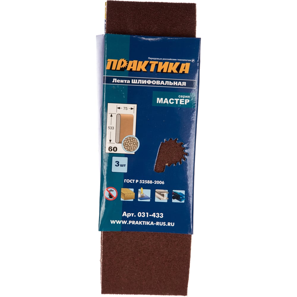 Лента шлифовальная (3 шт; 75х533 мм; P60) ПРАКТИКА 031-433