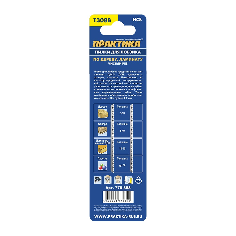Пилка (2 шт; T308B) для лобзиков ПРАКТИКА 775-358