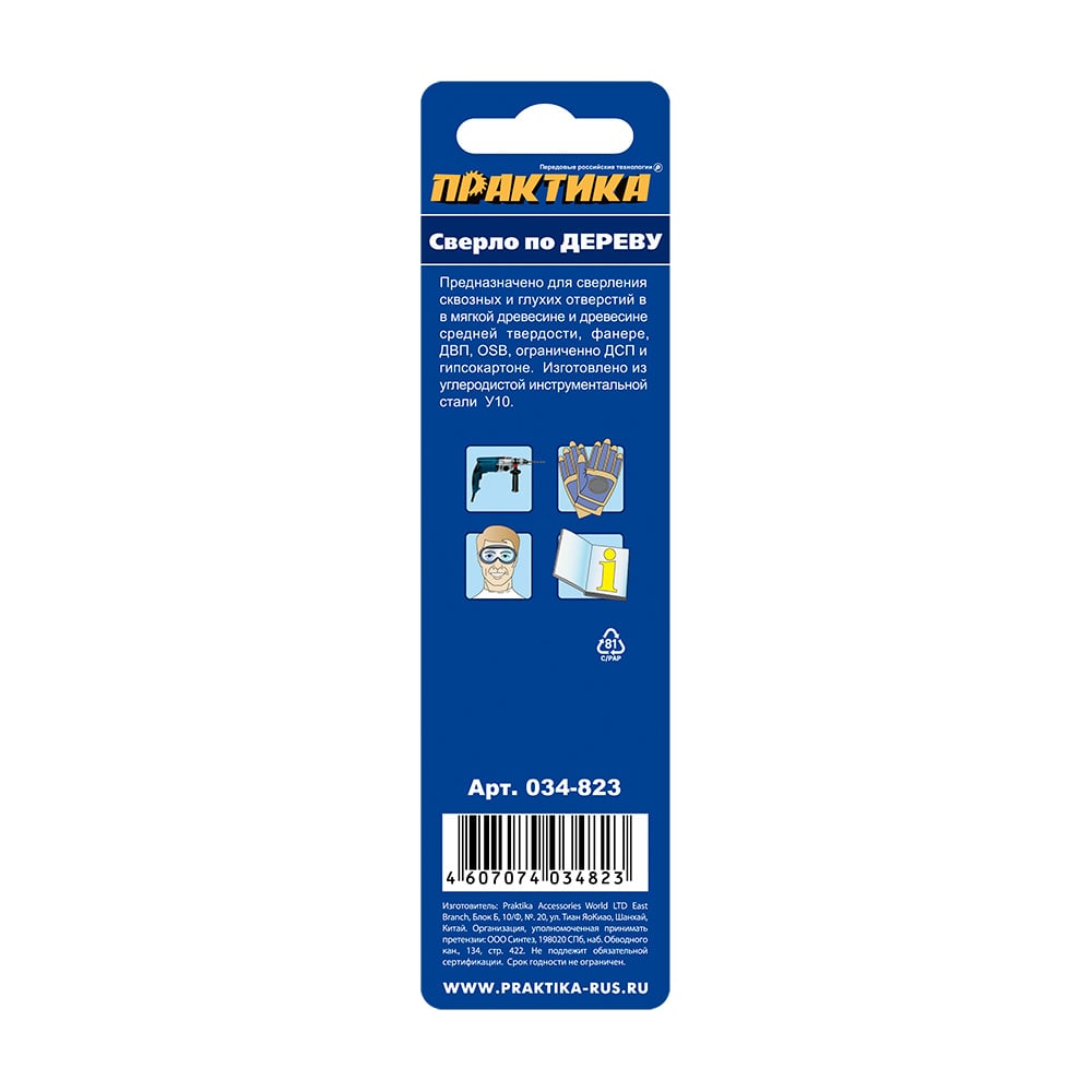 Сверло по дереву ПРАКТИКА 034-823