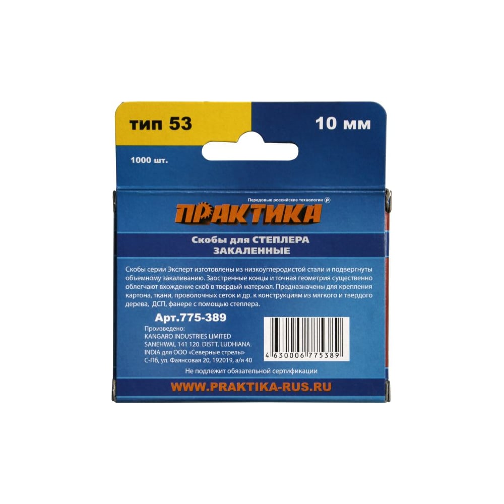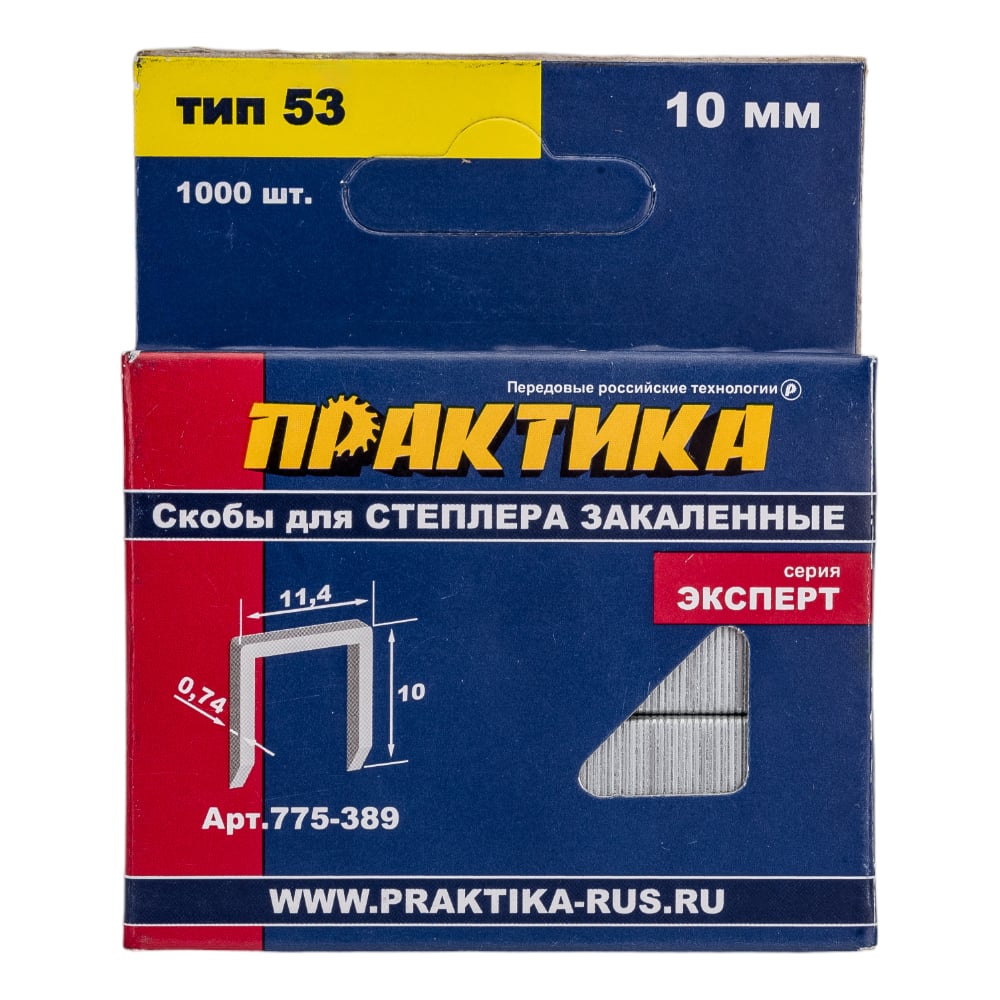 Скобы для степлера (1000 шт; 10х0.74х11.4 мм) ПРАКТИКА 775-389