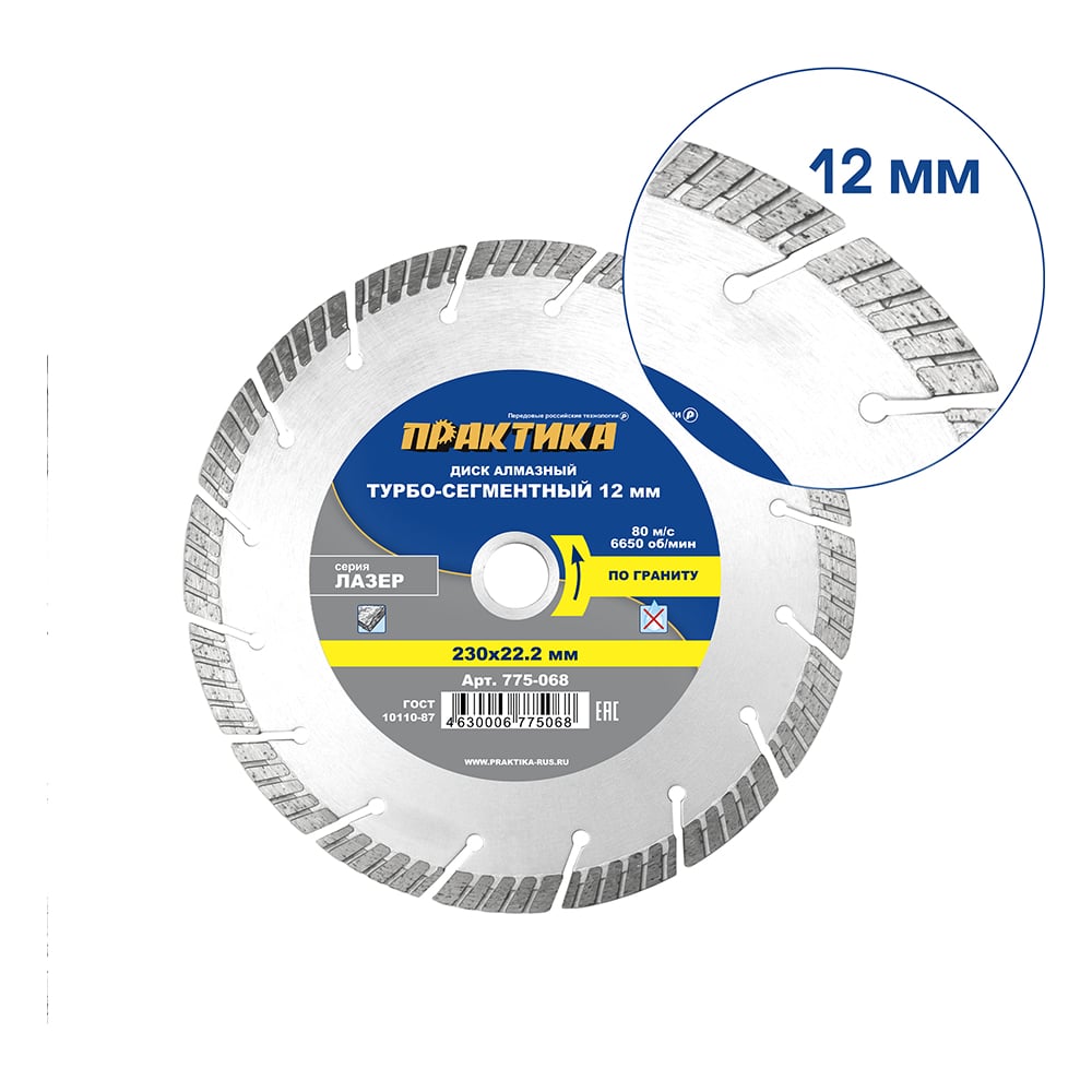 Диск алмазный сегментный Лазер по граниту (230х22.2 мм) ПРАКТИКА 775-068